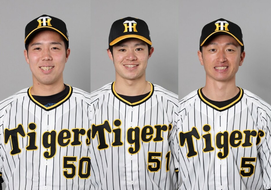 左から青柳晃洋投手、中野拓夢選手、近本光司選手/(c)阪神タイガース