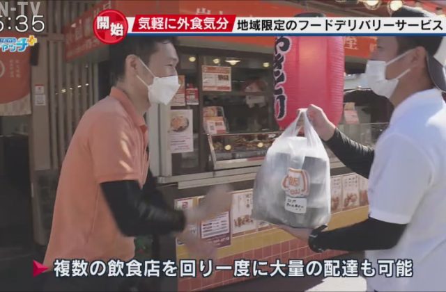 このサービス、コロナ禍で売り上げが減った飲食店を支援し地域全体を盛り上げていく狙いもあります。初日の25日はさっそく地域の住民からの注文が入り、出来たての商品を届けていました。