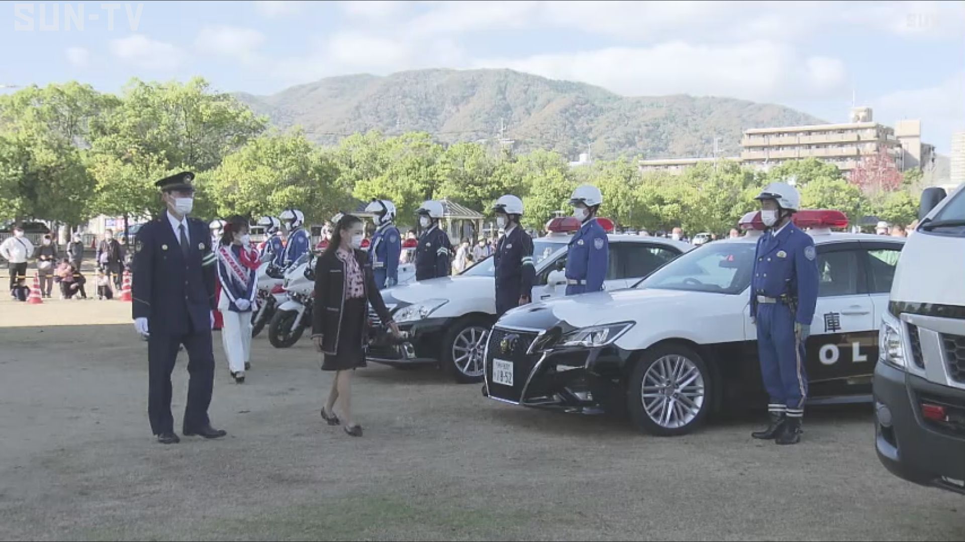 27日の出発式では、宝塚市の山崎晴恵市長や自動車協会の職員らを前に、宝塚警察署の田村署長が隊員らに訓示しました。