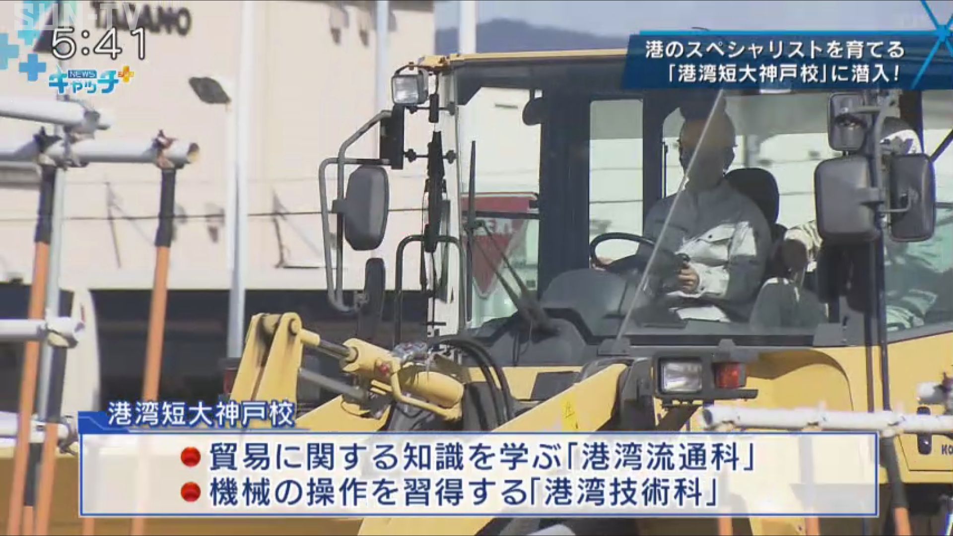 港湾短大神戸校には、貿易に関する知識を学ぶ「港湾流通科」と、港で貨物を積み込む機械の操作を習得する「港湾技術科」、それに、既卒者向けの「港湾ロジスティクス科」の3つの学科があります。