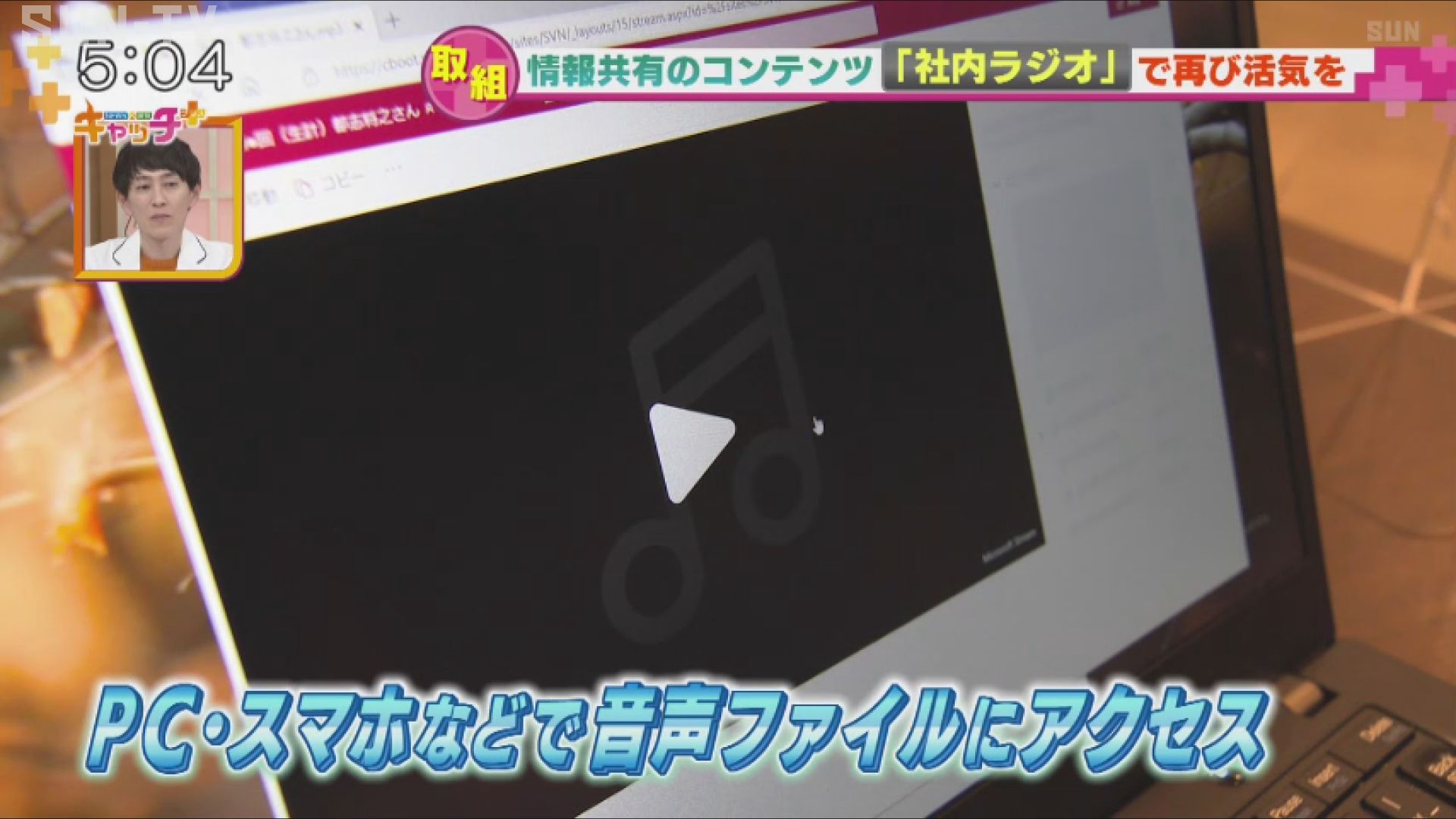 「『社内ラジオ』というのは放送しているものではなくて、インタビューした番組を、会社内でいつでも聴けるように(社内ネットワークに)ファイルを置いているものになります」