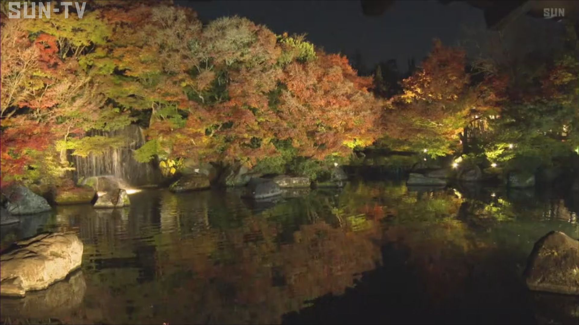 好古園の紅葉のライトアップは12月4日まで毎日実施され、期間中は午後8時まで開園しています。