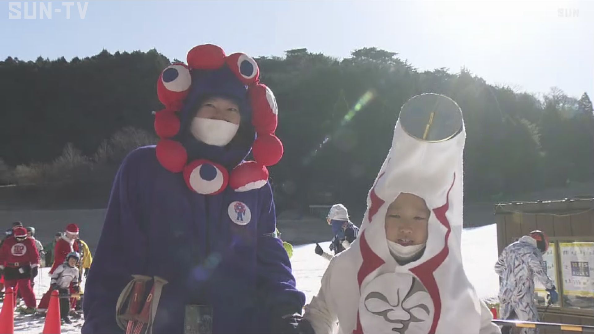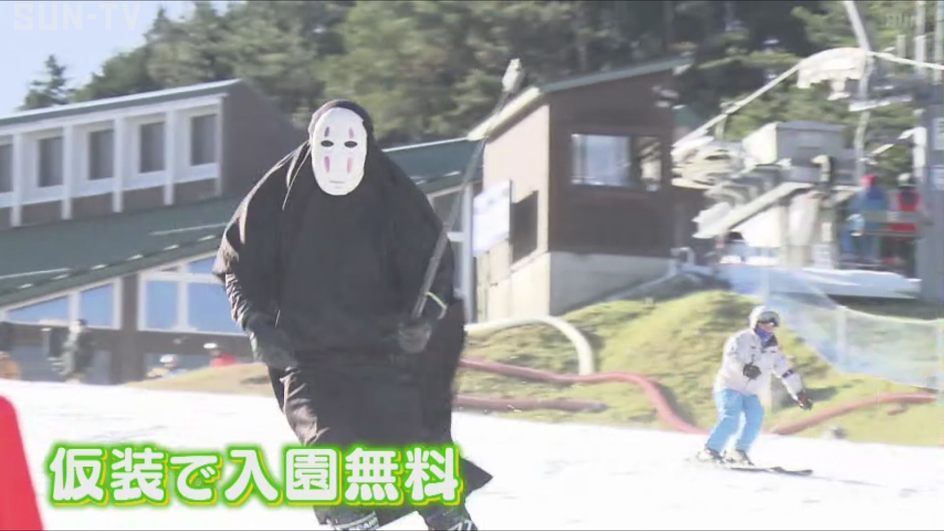 六甲山スノーパークでは例年、オープン初日に全身仮装をして来場すると入場とリフトの料金が無料となり、場内は様々な衣装を身にまとった人たちでにぎわいました。