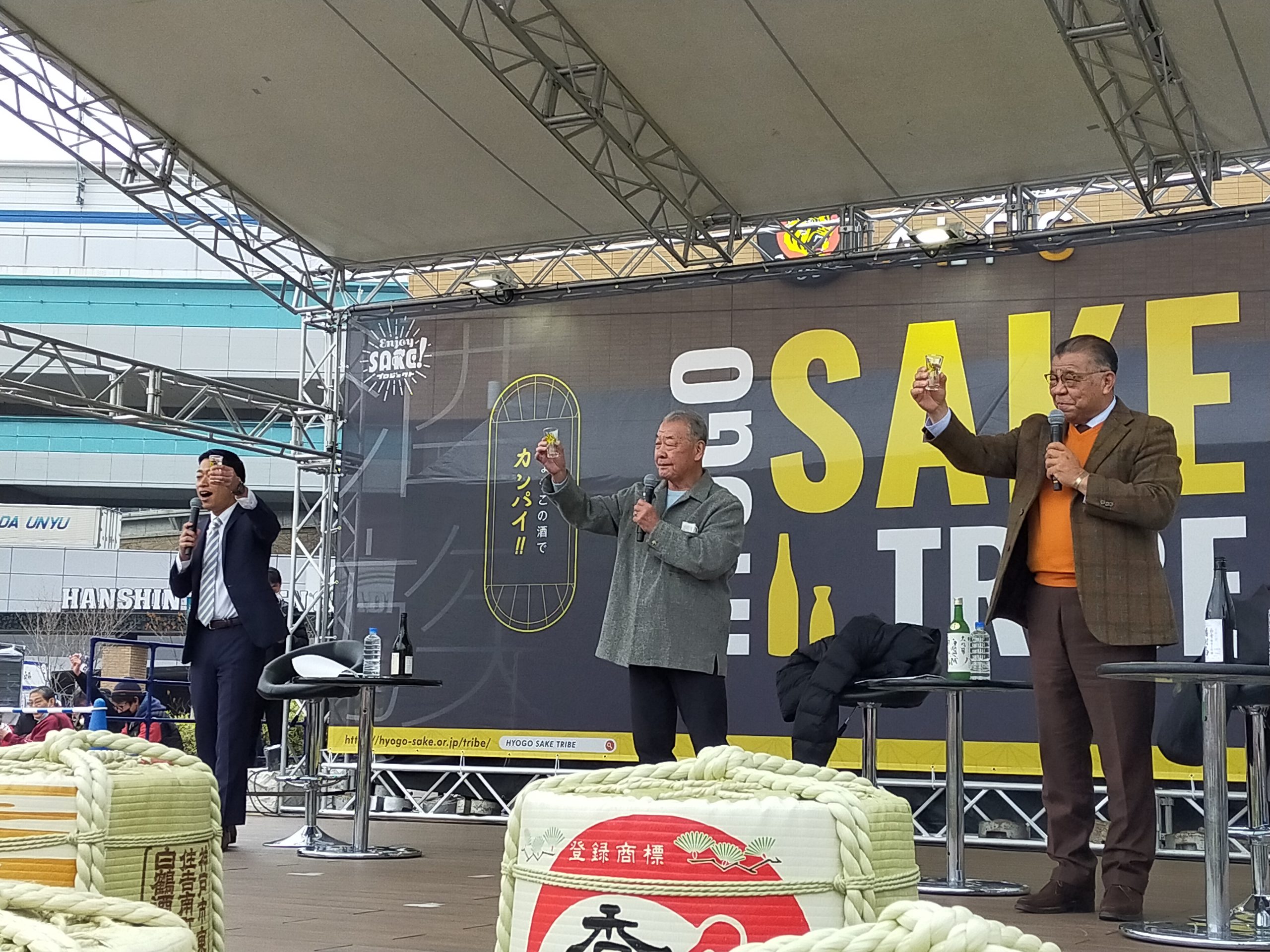 12月4日、阪神甲子園駅前で兵庫県酒造組合連合会が主催する県内41酒蔵が参加する試飲イベントがあった。
