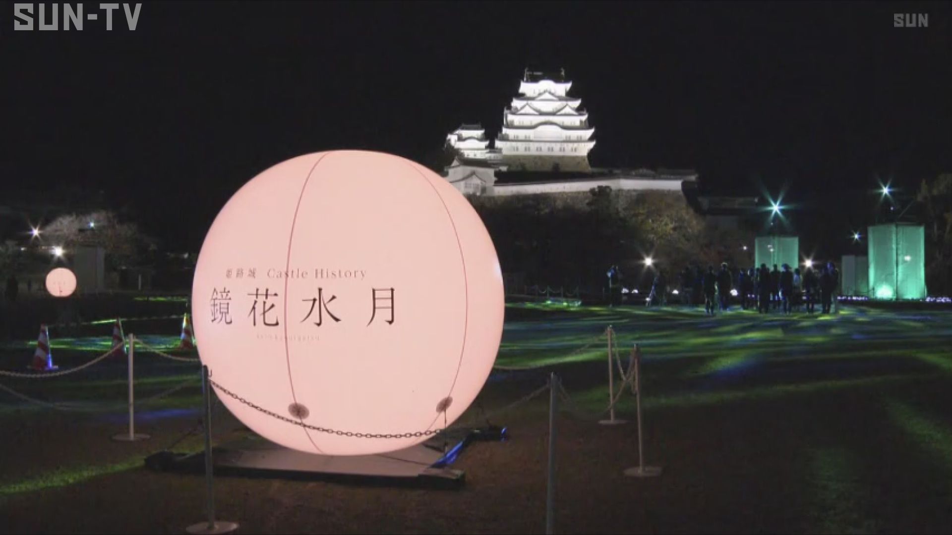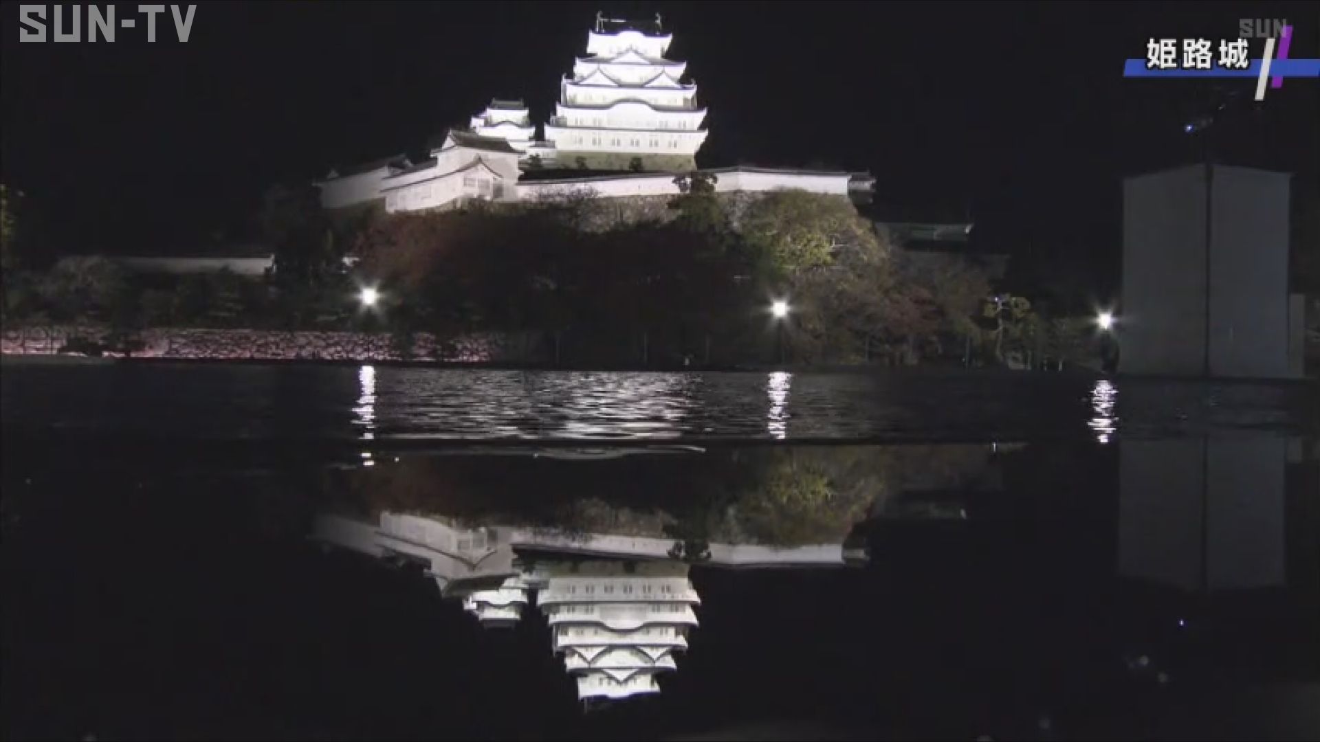 大天守や石垣が水面に映り込み、当時、城主たちが楽しんだかもしれない夜の城の姿を光と水と音楽で表現しています。 姫路城のライトアップイベントは観覧無料で、12月11日まで開かれています。
