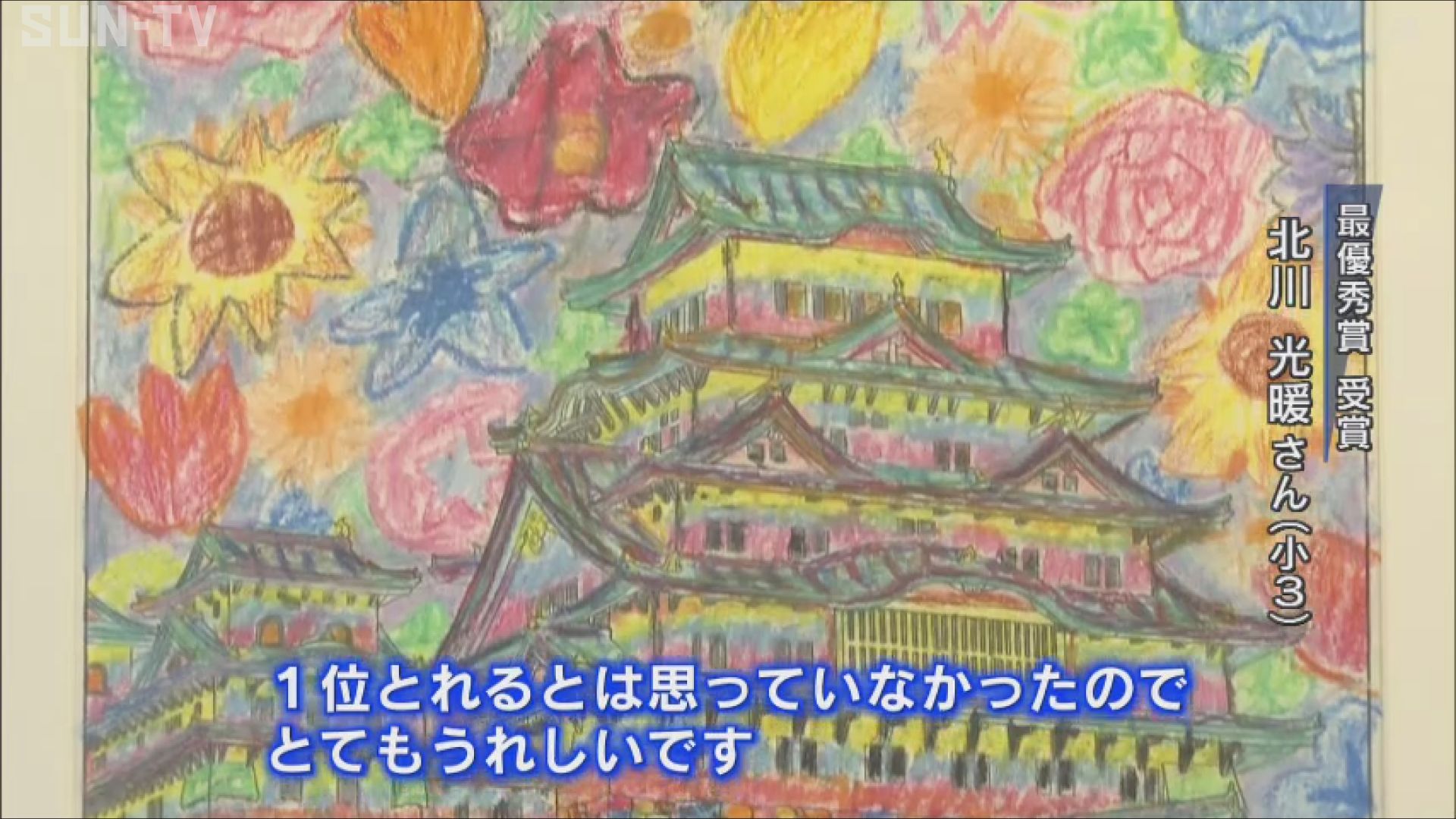 最優秀作品には、真っ白な姫路城をカラフルに表現した小学3年の北川光暖(きたがわ・このん)さんの作品が選ばれました。