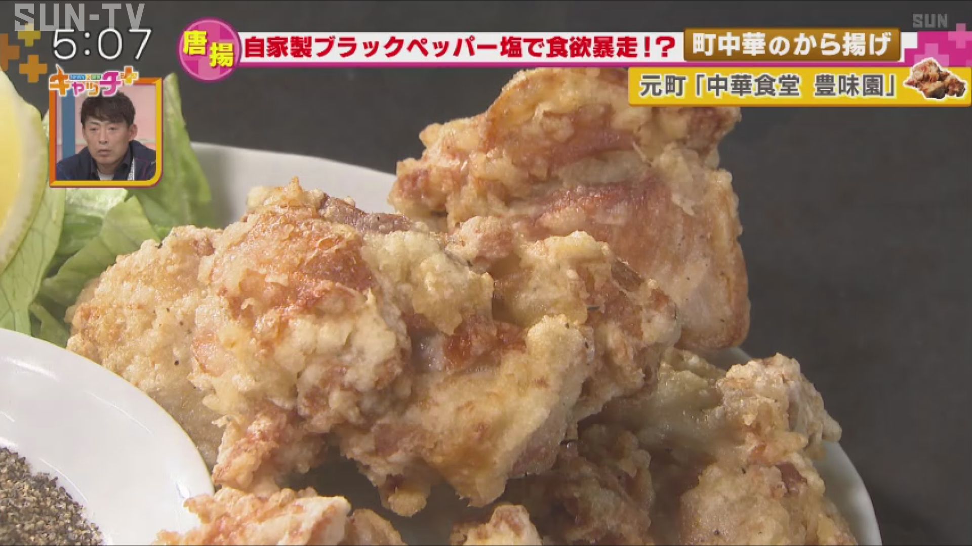 衣に卵が使われているので、ふわっカリッ、ふたつの食感が楽しめるこのから揚げ。しょうゆベースの深い味わいを楽しんだら、自家製ブラックペッパー塩をつけてふたつ目の味を楽しみます。やみつきになる程うまい、町中華のから揚げです。