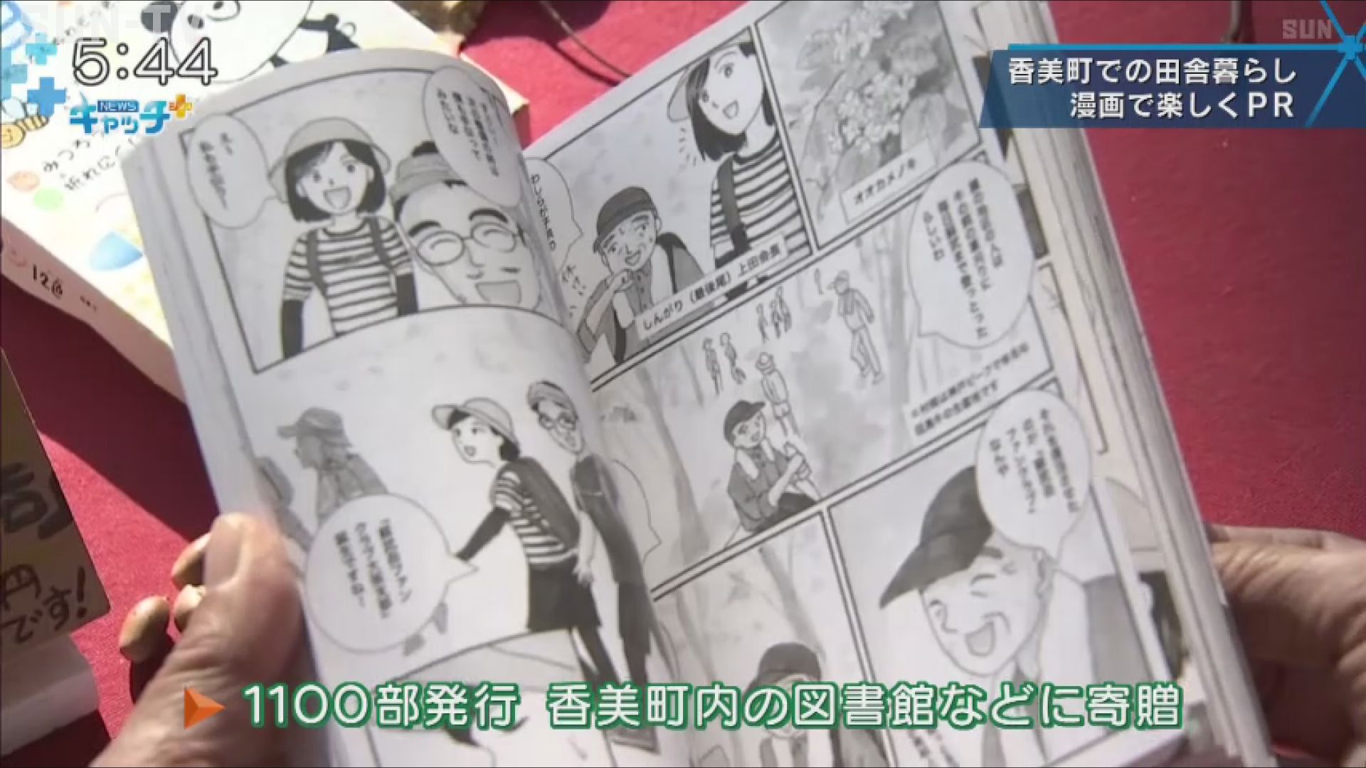 短大でデザイン美術を学んだ岡さん。1話から10話まで1年半かけて完成。1100部を発行し、町内各地の図書館などに寄贈しました。