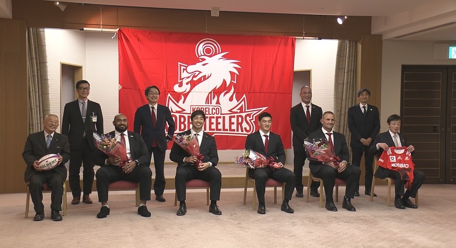 ラグビーリーグワン1部の開幕を前にコベルコ神戸スティーラーズの選手たちが神戸市役所を訪れ今シーズンの活躍を誓いました。