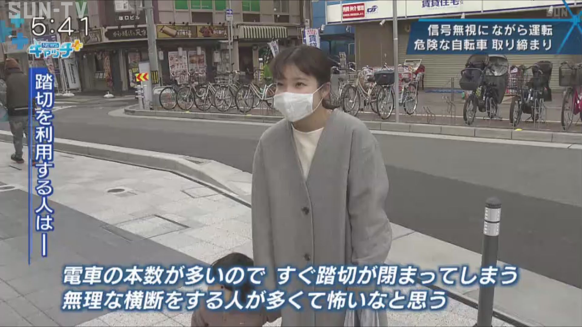 この日、遮断機が多く降りる朝の30分間で、踏切での危険行為が数多く確認されました。兵庫県警によりますと、ことし1月から10月末までで、信号無視や遮断踏切への立ち入りなど自転車の違反行為はおよそ3900件摘発されています。