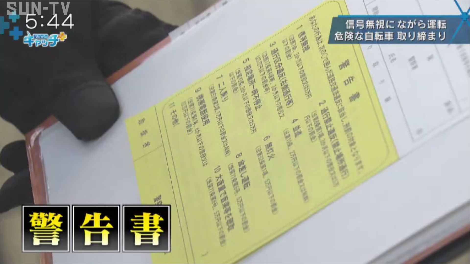 「今回警告ですけど、何回も繰り返すようでしたら、書いてあるように10万円以下の罰金とかが発生するんで気を付けてください」