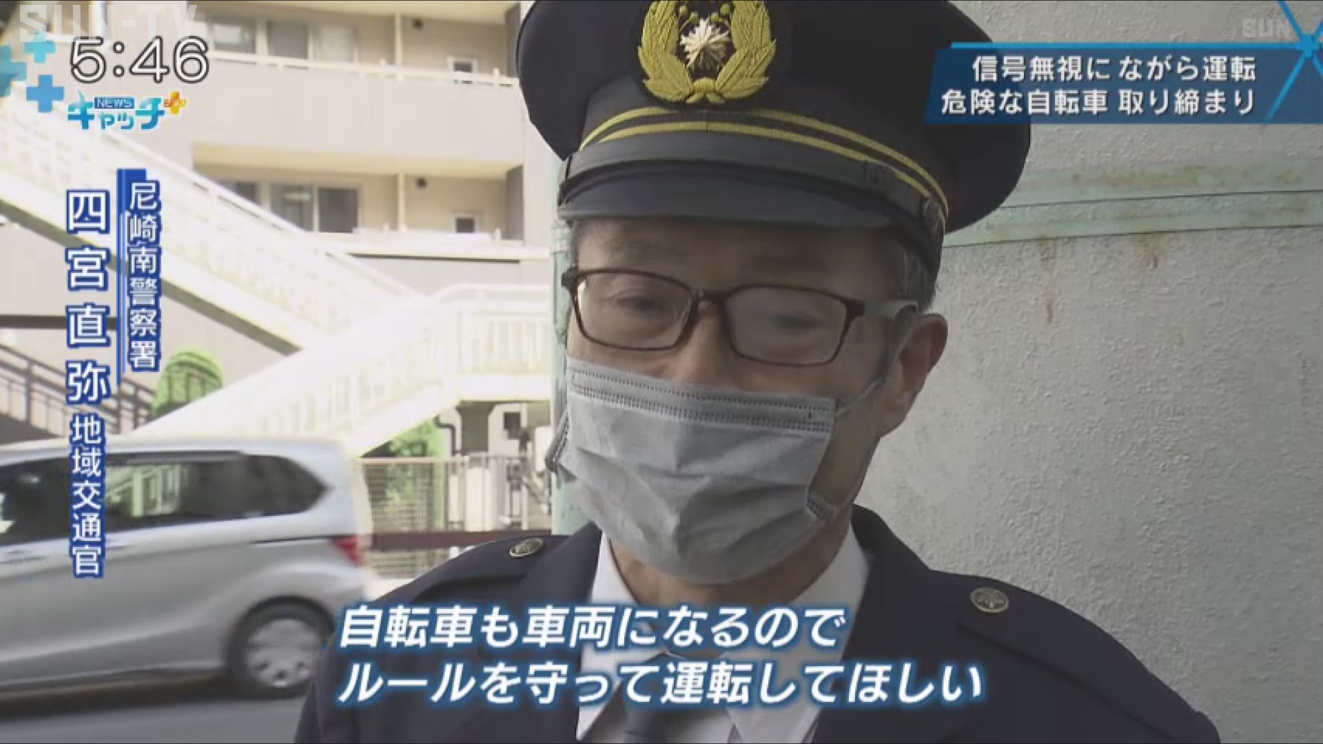 「尼崎市は坂があまりありませんので自転車を利用する人が多い。自転車も車両になるのでルールを守って運転してほしい」