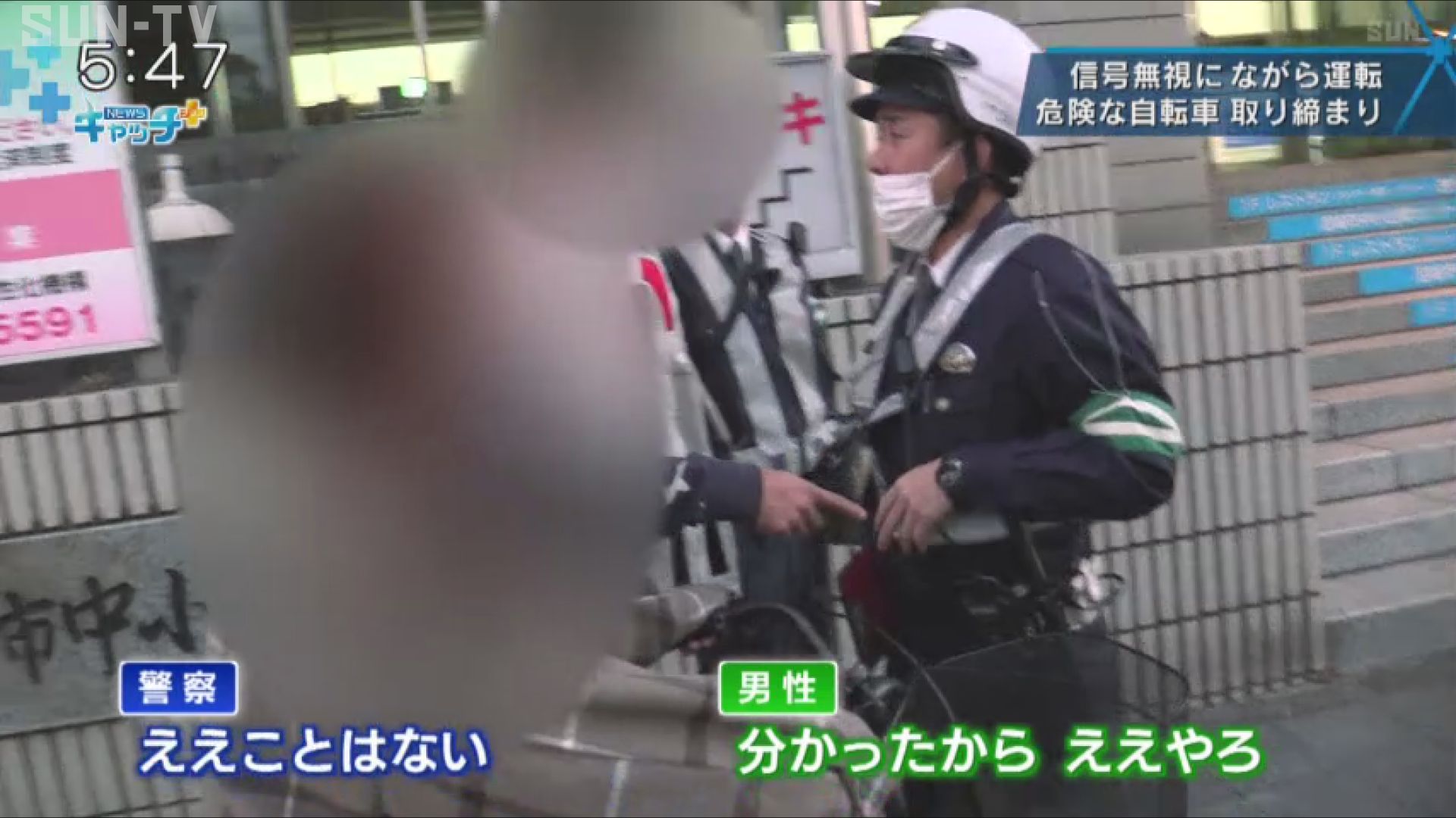 【警察】「点滅ということは『もうすぐ赤に変わりますよ』ということなので、しっかり止まっとってもらわないと」