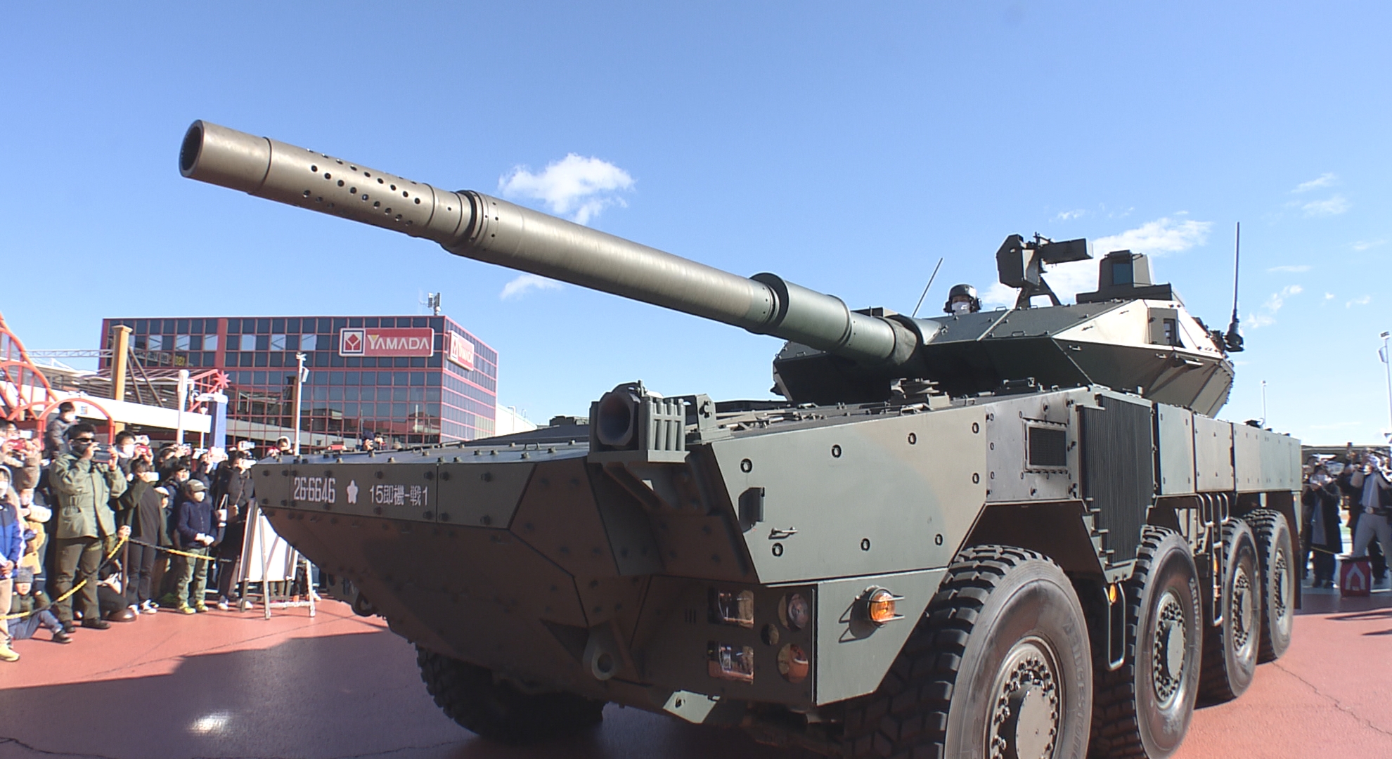 会場には、全長およそ8.5メートル、最高速度およそ100キロで走行可能な「16式機動戦闘車」が登場。