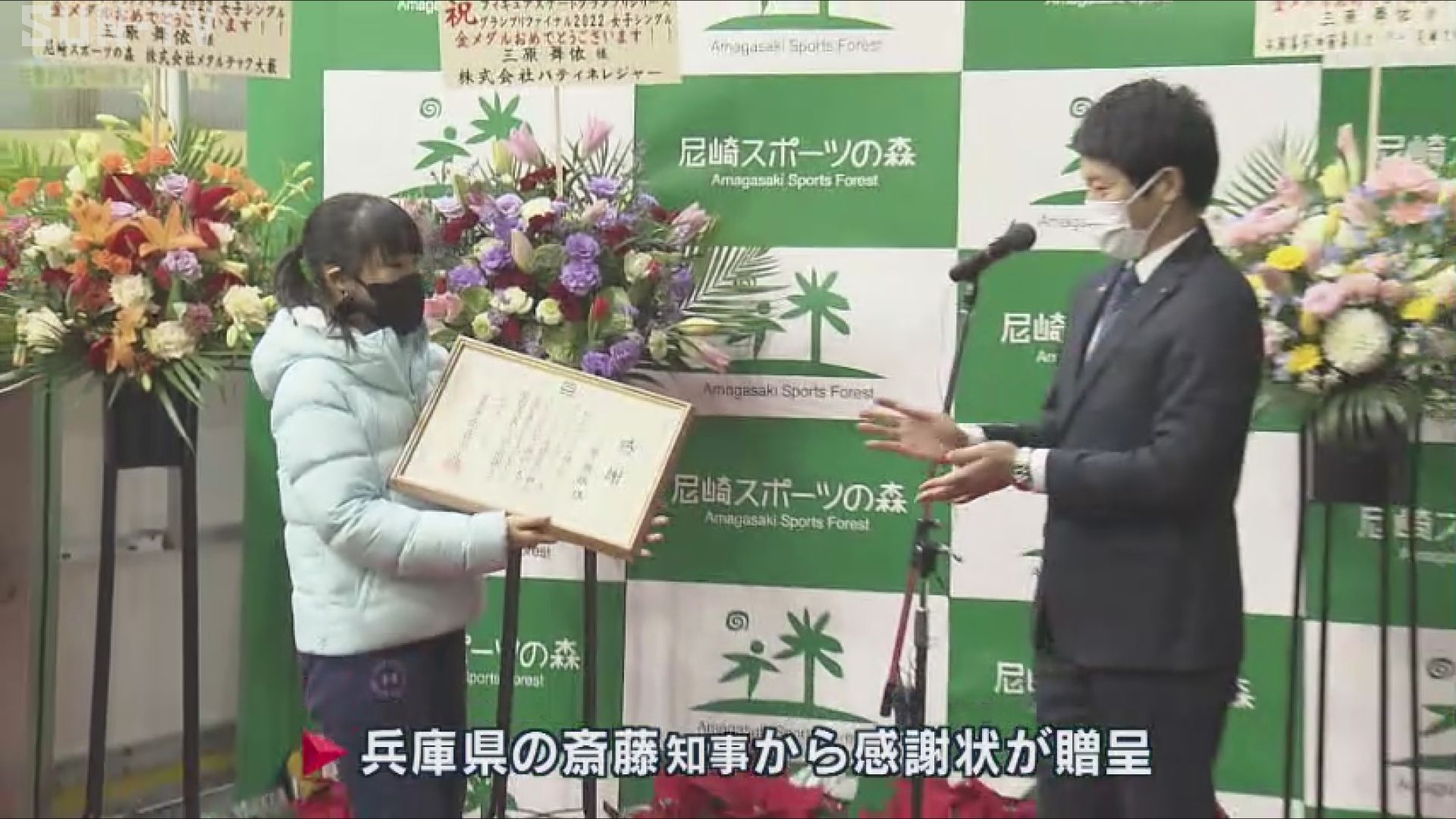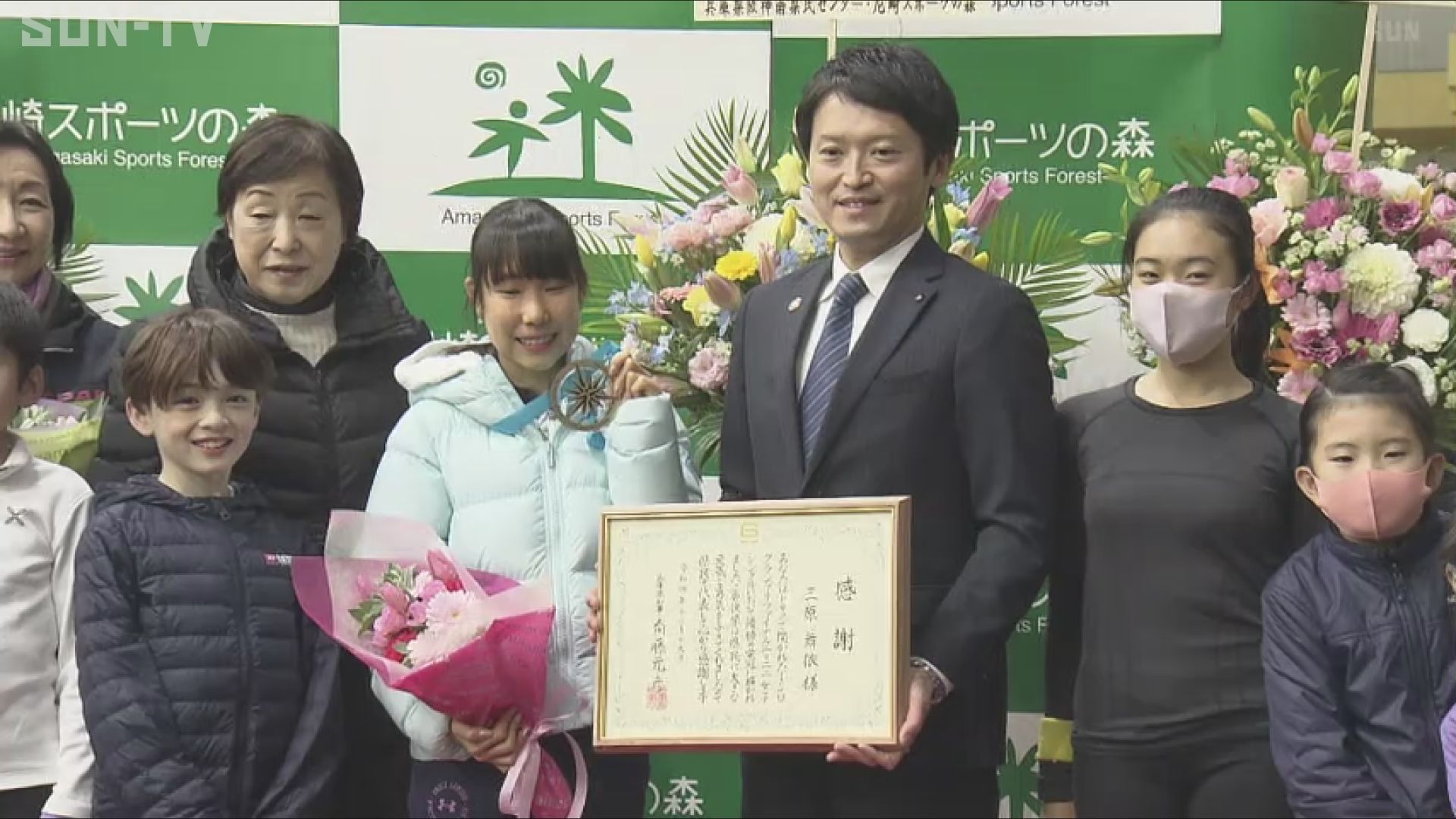 兵庫県神戸市出身で、フィギュアスケート女子の三原舞依選手に、県から感謝状が贈られました。