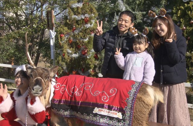 24日は、「そらやん」が神戸空港を訪れた人たちにキーホルダーと紙飛行機をプレゼントし、受け取った家族連れらは一緒に写真を撮りクリスマス気分を味わっていました。