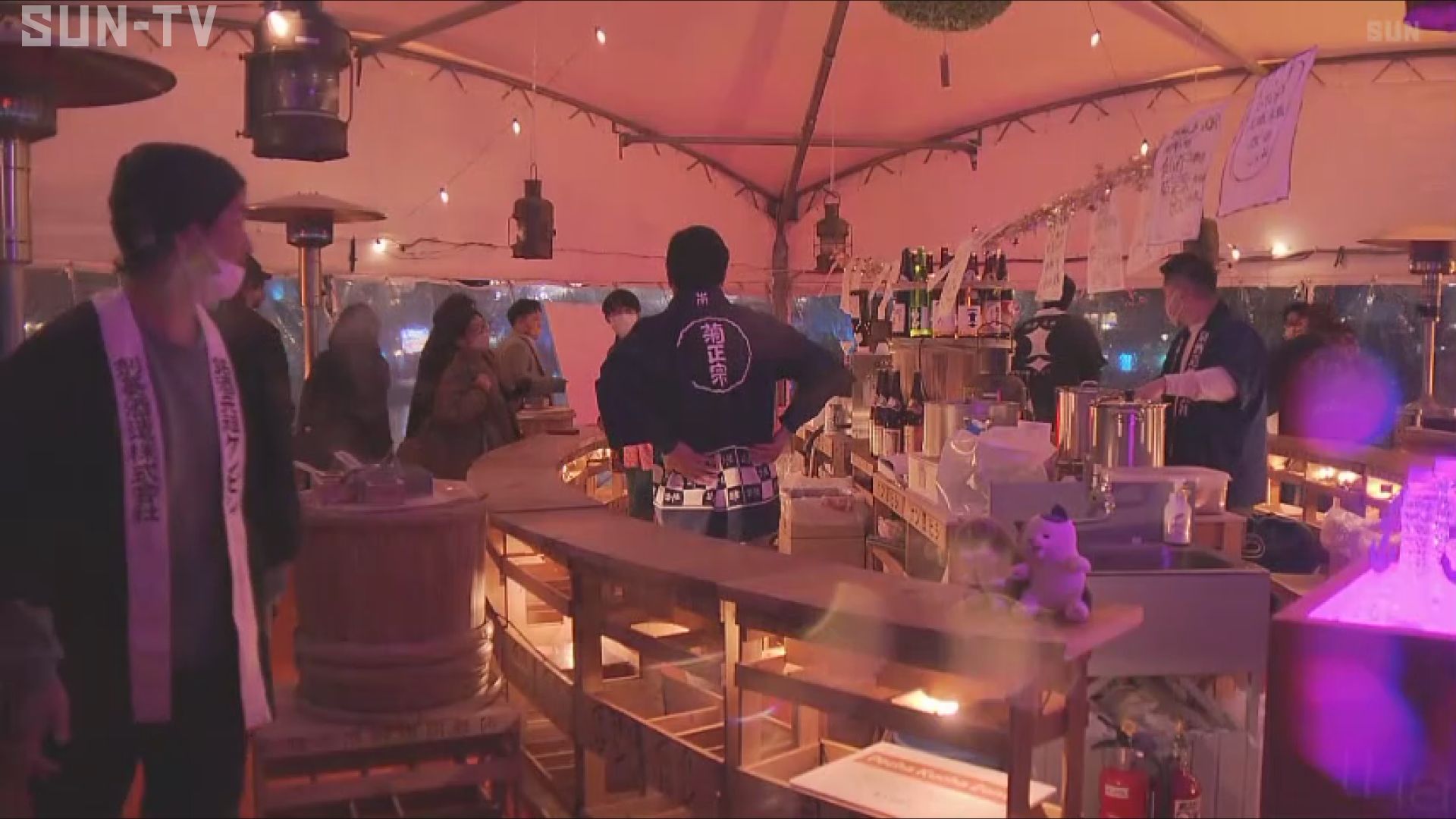 2022年の演出テーマは「自然と太陽のめぐみを未来につなぐ光」で、音に合わせて色あざやかな光が動く特別演出に加え、日替わりで灘五郷全26蔵のお酒を楽しめるゾーンもあります。