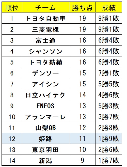 白崎の“孤軍奮闘”にもかかわらず、姫路イーグレッツは1勝9敗と苦しい戦いが続く。Wリーグは勝ち点(勝ち2点、負け1点)で順位を決めるため、試合数が多い姫路は14チーム中12位だが、勝率でみると“最下位”だ。