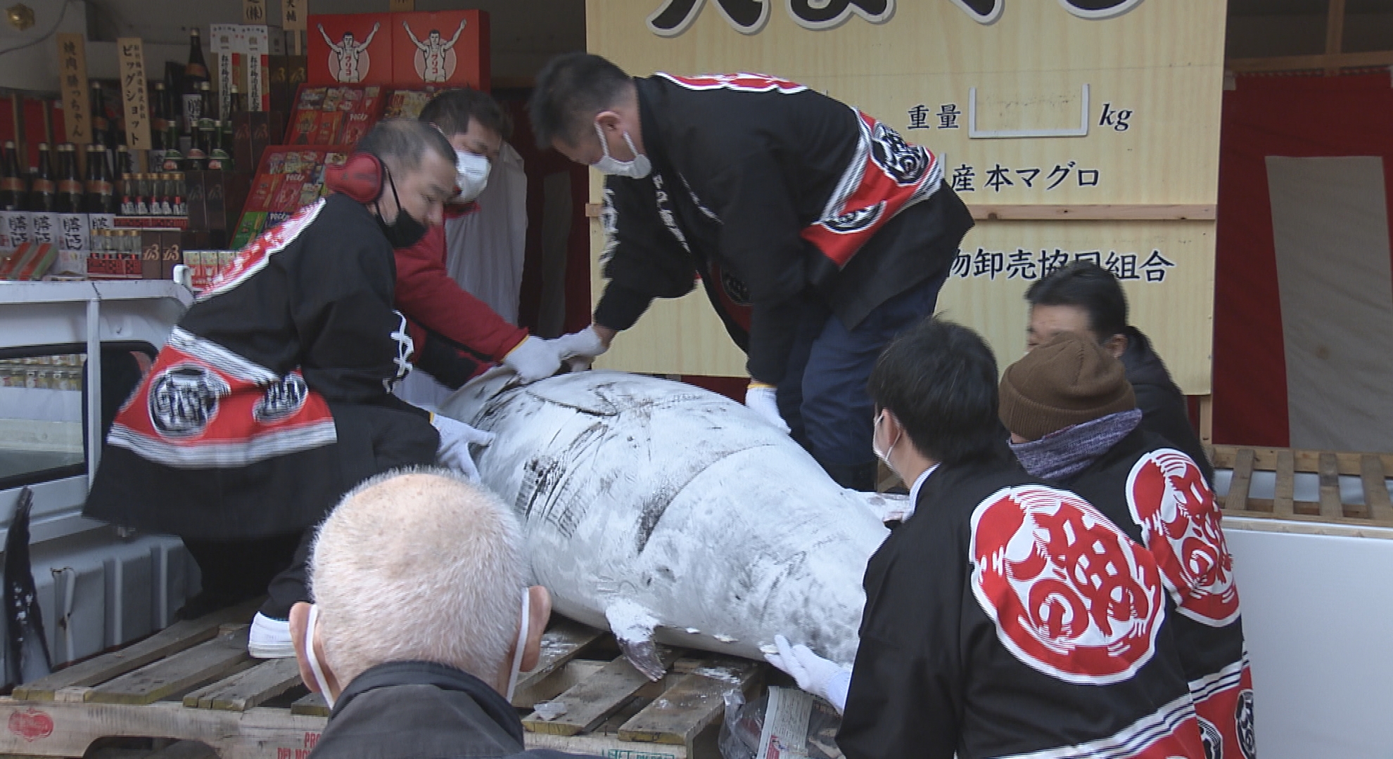 2022年のマグロは鹿児島県で水揚げされたもので、全長およそ2.3メートル、重さおよそ230キロ。