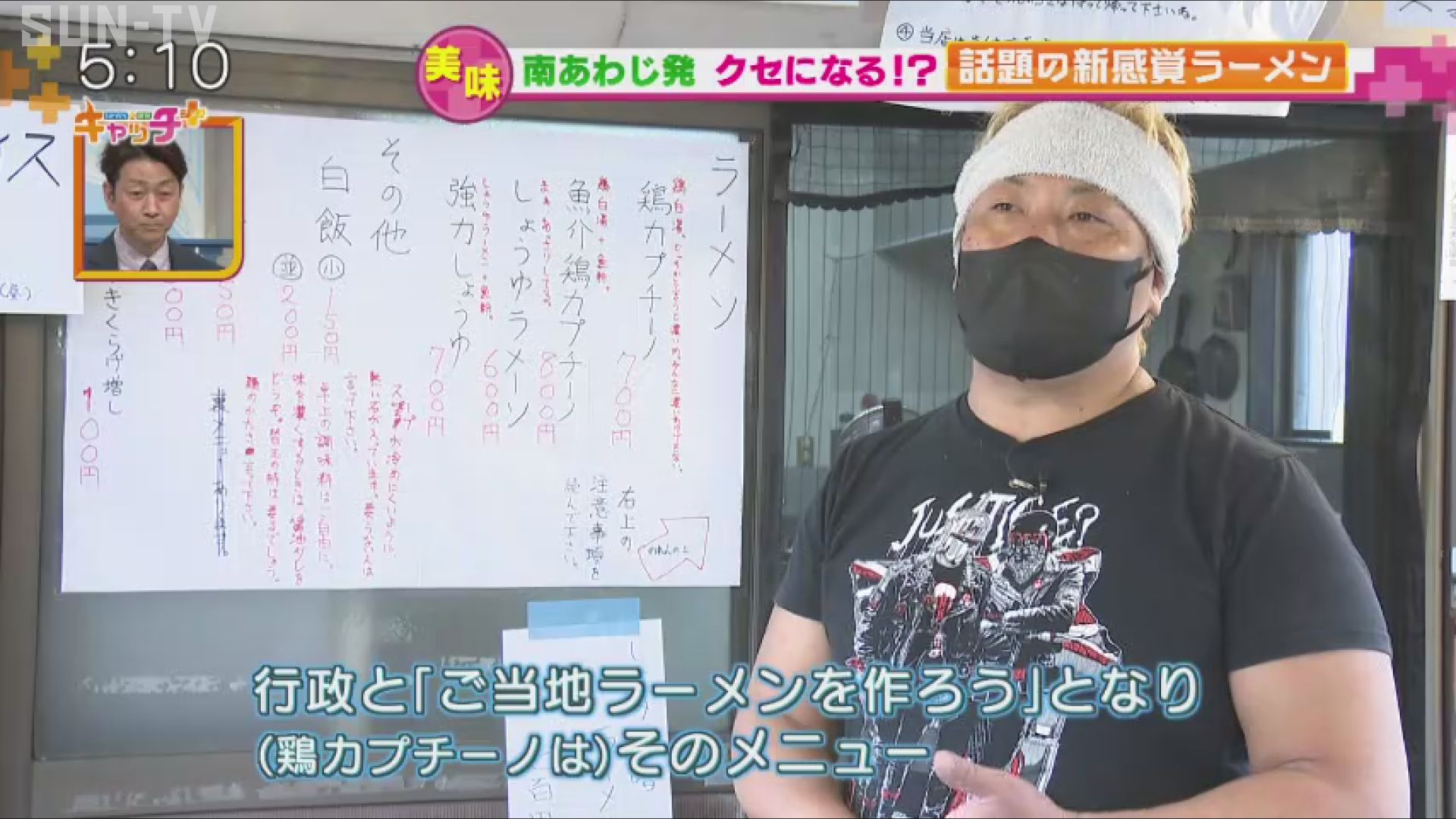 「行政と『ご当地ラーメンを作ろう』となっていて、(鶏カプチーノは)それ用のメニュー。喜多方ラーメンや博多ラーメンのような、地元の人に慣れ親しんだご当地ラーメンを作ろうと。それを先行してうちが出しているという感じ」