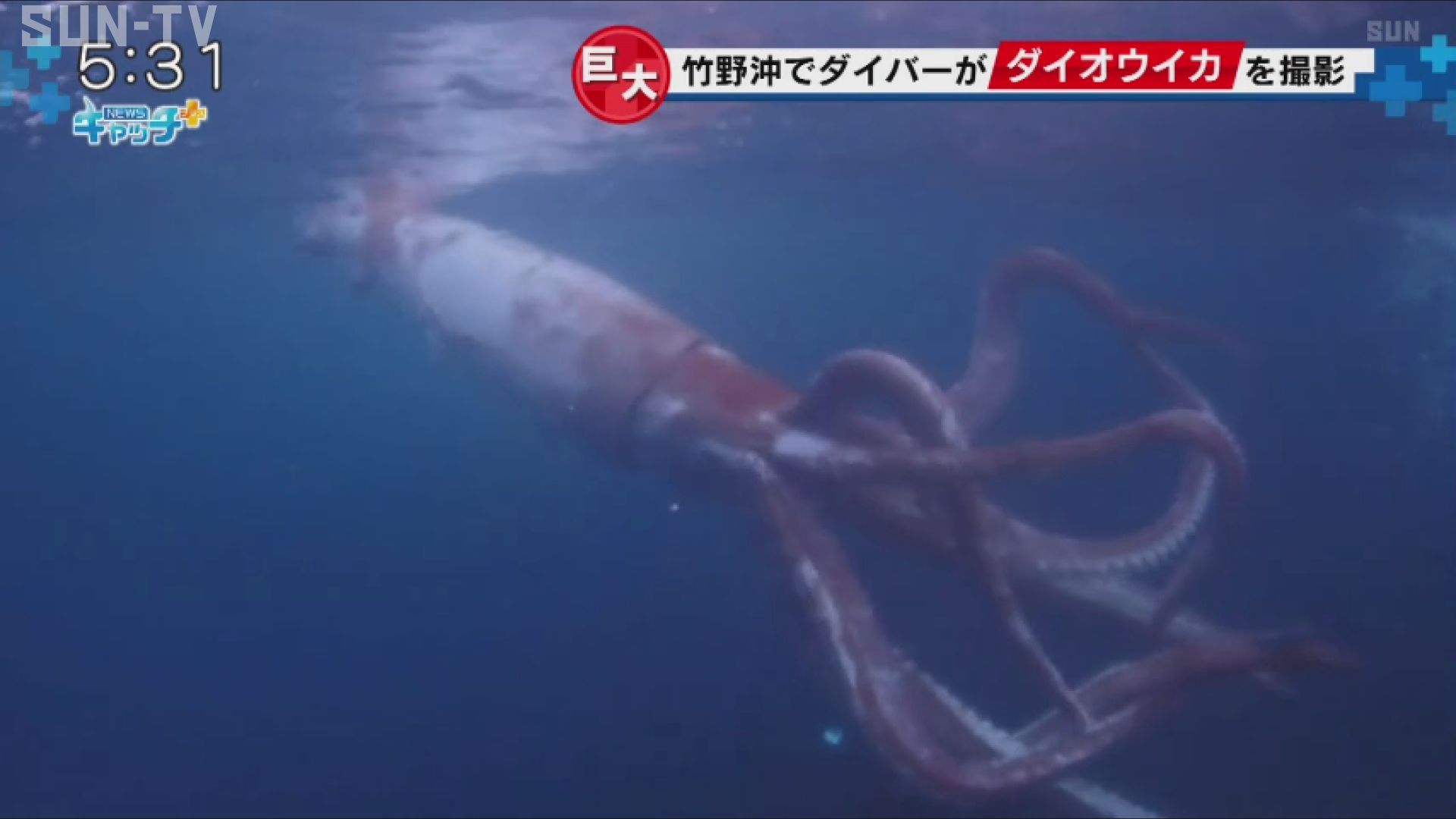 二人が撮影できた時間は30分ほどで、ダイオウイカは港の外にゆっくり泳いで出ていったということです。