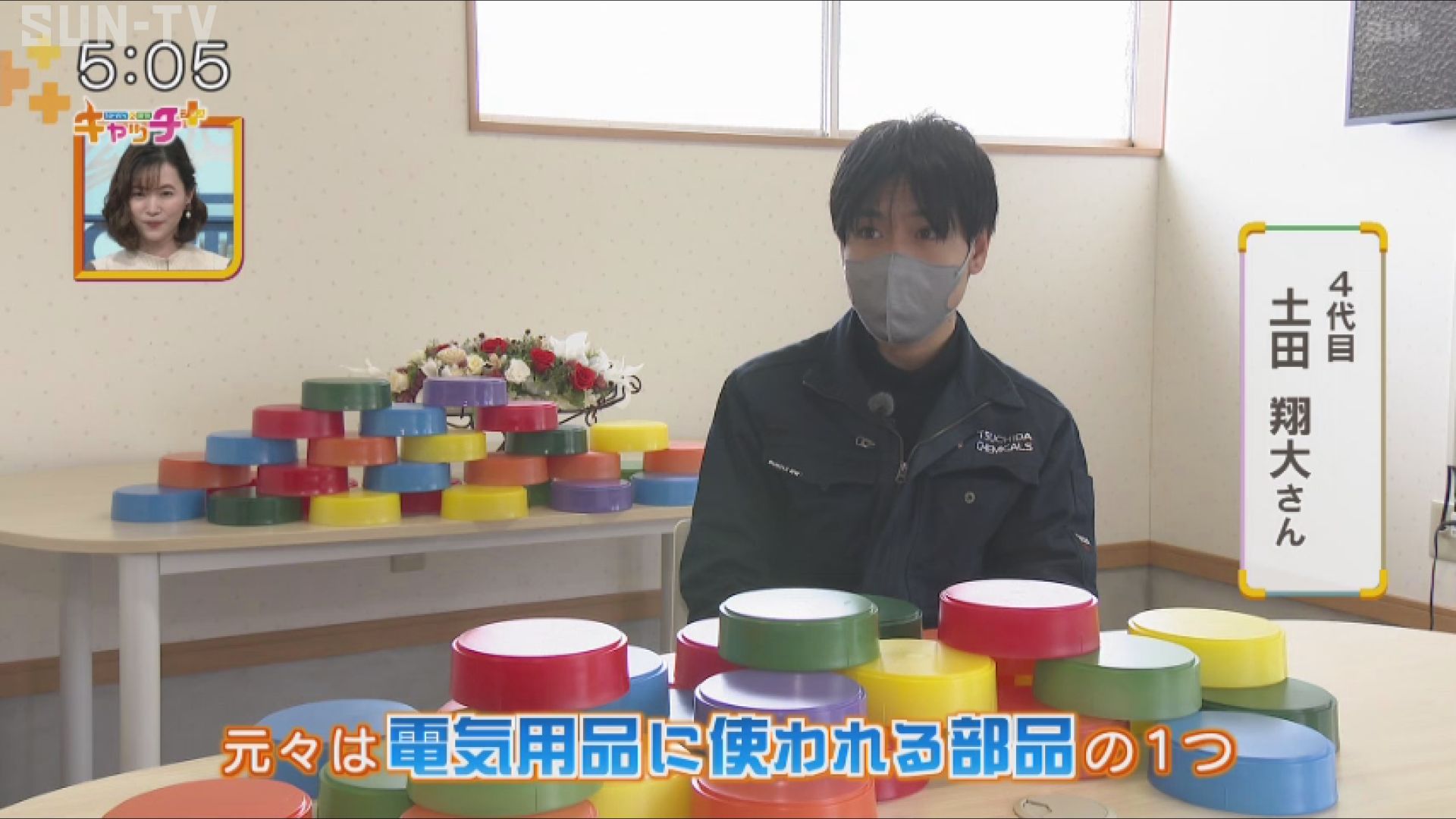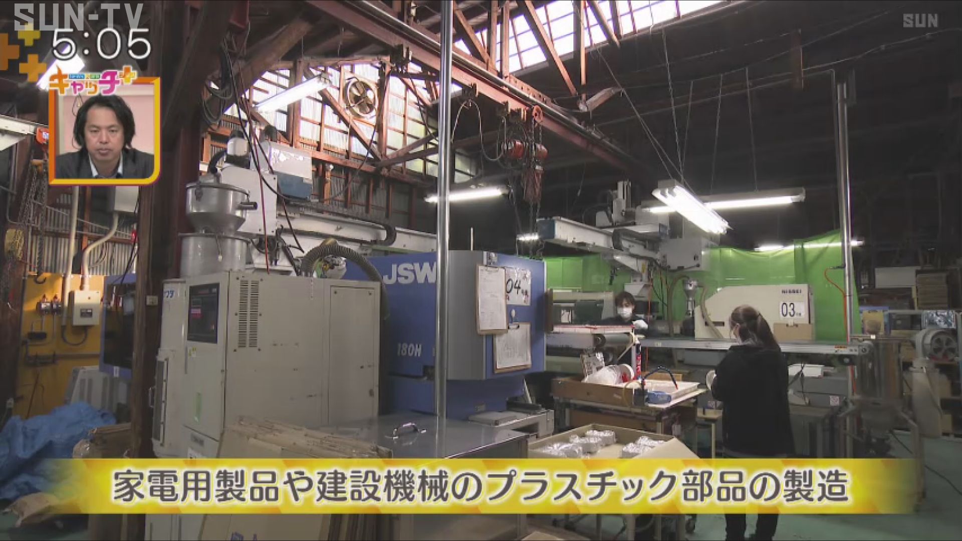 やって来たのは、丹波市にあるこちらの工場です。家電用製品や建設機械のプラスチック部品の製造を行っています。しかし、どう見てもおもちゃとは無縁の工場。「にじいろぶろっく」は、何の廃材を使ったものなのでしょうか?