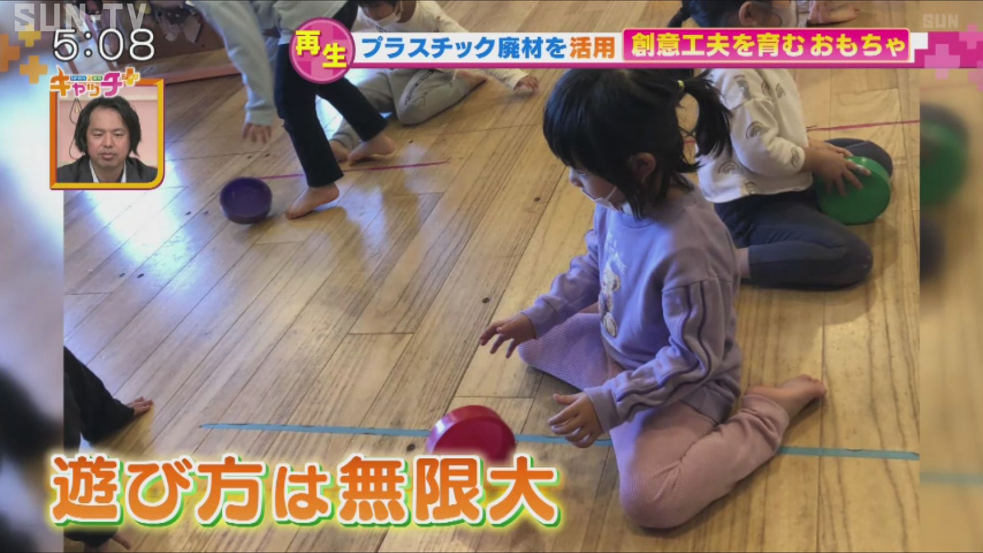 プラスチックの廃材が、シンプルだけれど遊び方が自由自在なおもちゃに生まれ変わりました。子ども達の感性でまだまだ用途は広がっていきそうです。