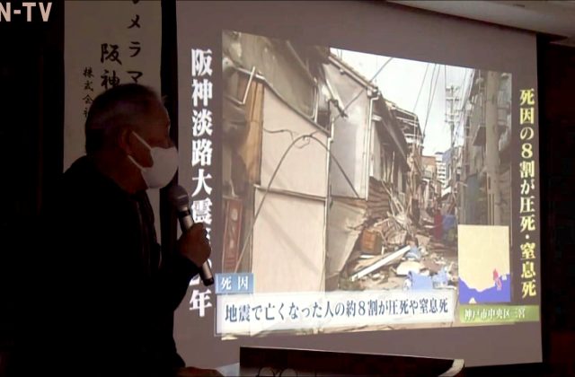 あす17日で阪神淡路大震災から28年になるのを前に、サンテレビの元報道カメラマンが、兵庫県警の警察官らに当時の取材の様子や心境を語りました。