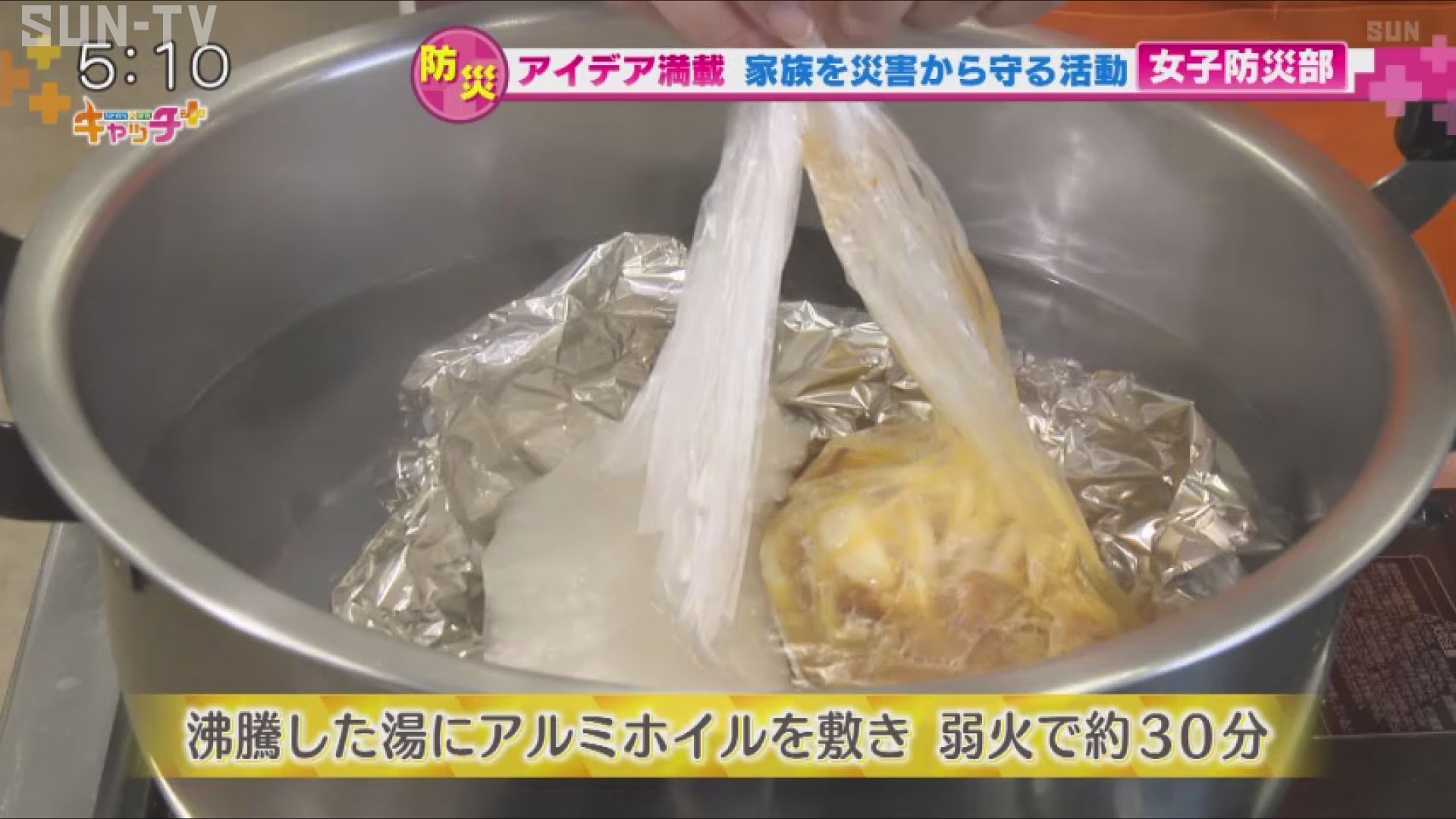 ③ 沸騰したお湯にアルミホイルを敷いて、弱火でおよそ30分。