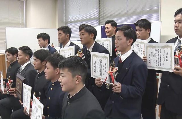 兵庫県高校野球連盟が選出した今年度の優秀選手の表彰式が20日、明石市で行われました。