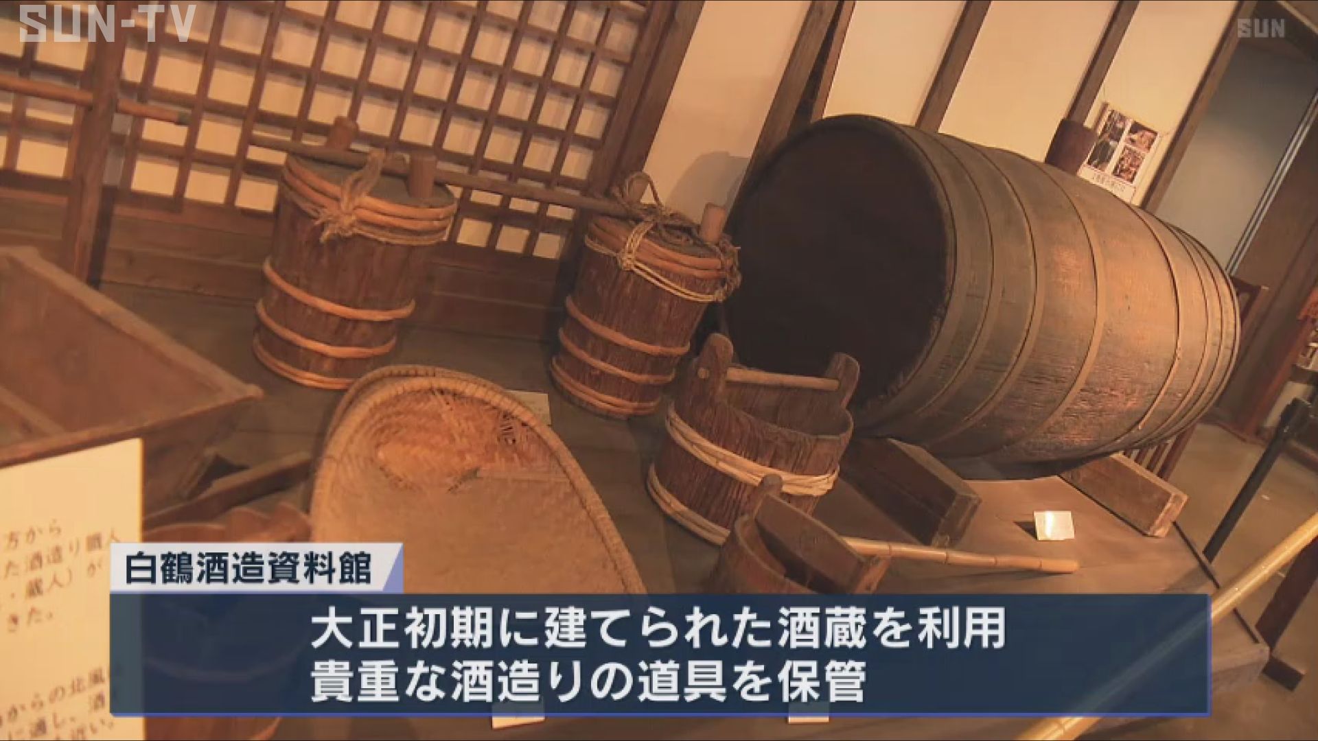 神戸市東灘区にある白鶴酒造資料館は大正初期に建てられた酒蔵を利用していて、貴重な酒造りの道具が保管されています。