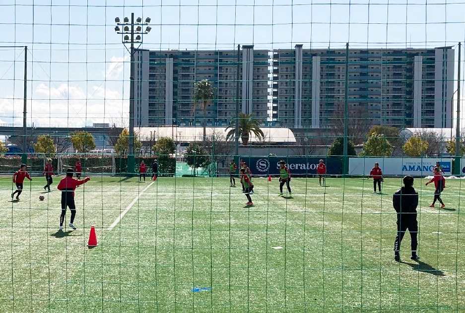 (後ろ姿)指導する朴監督/神戸・六甲アイランド