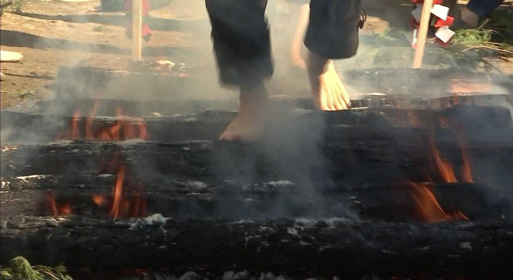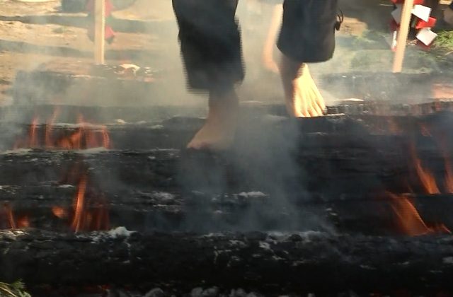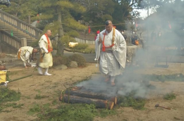 兵庫県洲本市の安覚寺で1月29日、一年の無病息災を願う伝統行事の「火渡り」が行われました。