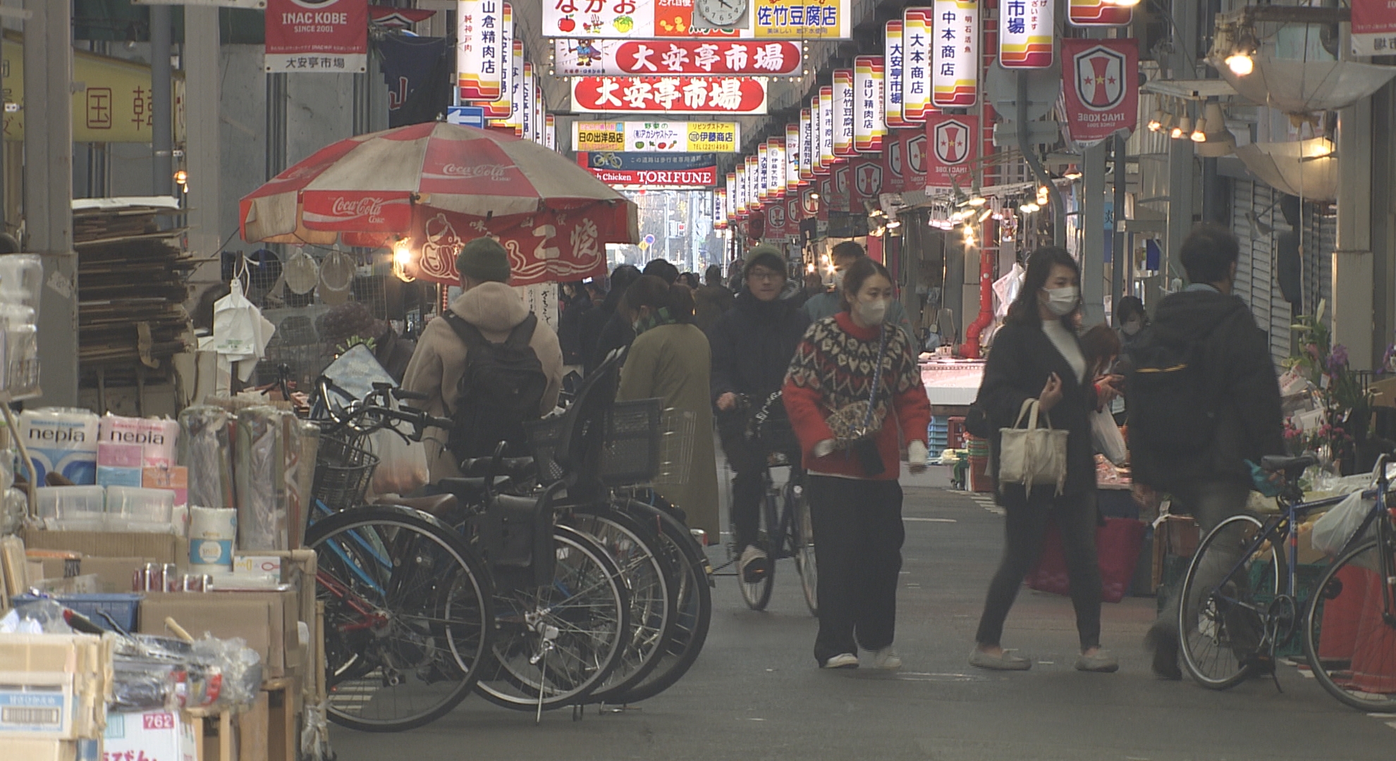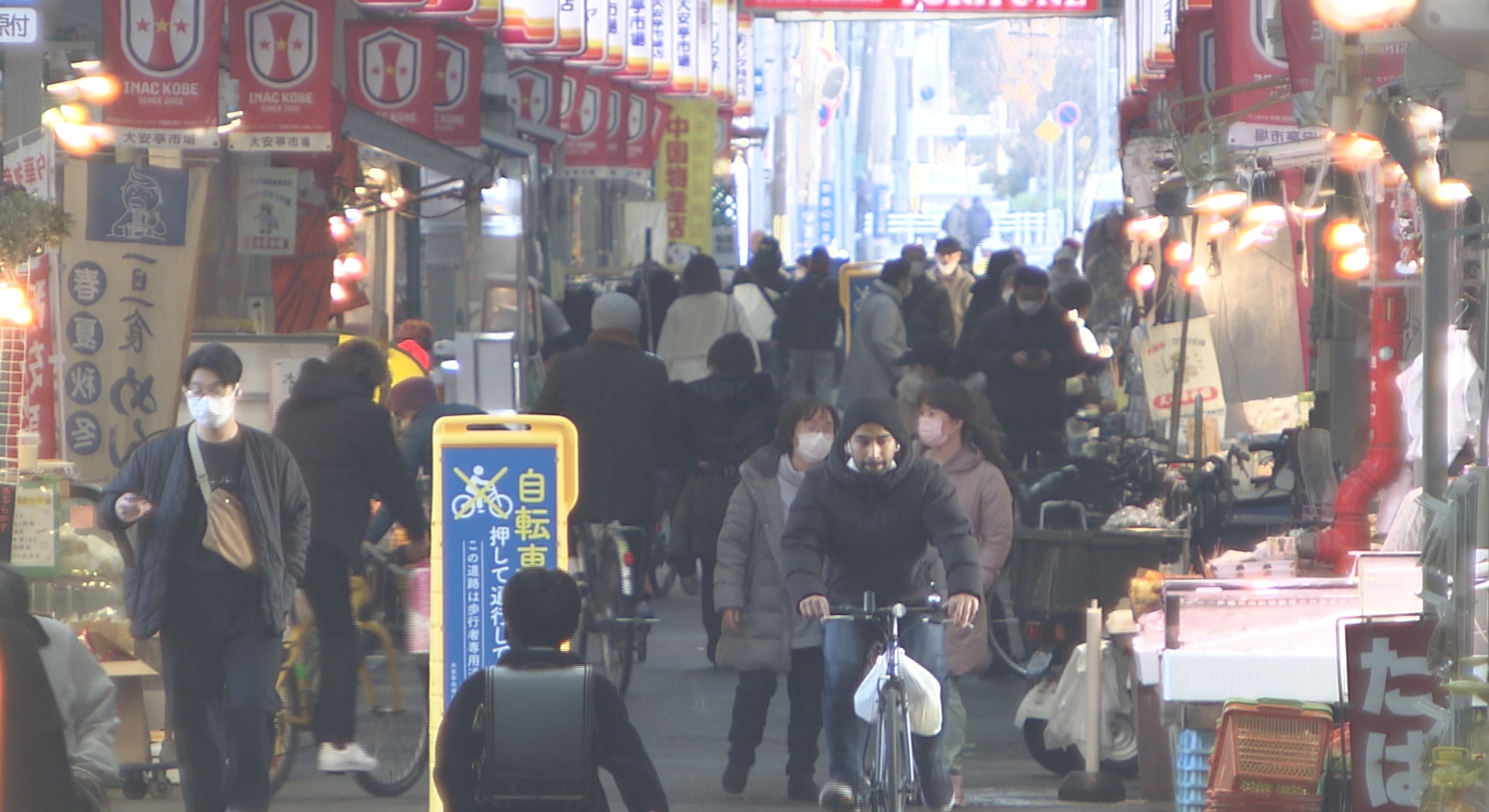 大安亭市場は、かつて近くにあった浪花節の小屋「大安亭」に多くの客が訪れたことから店が集まってできたとされています。 市場内を見回すと、買い物客の中に多くの外国人の姿が。