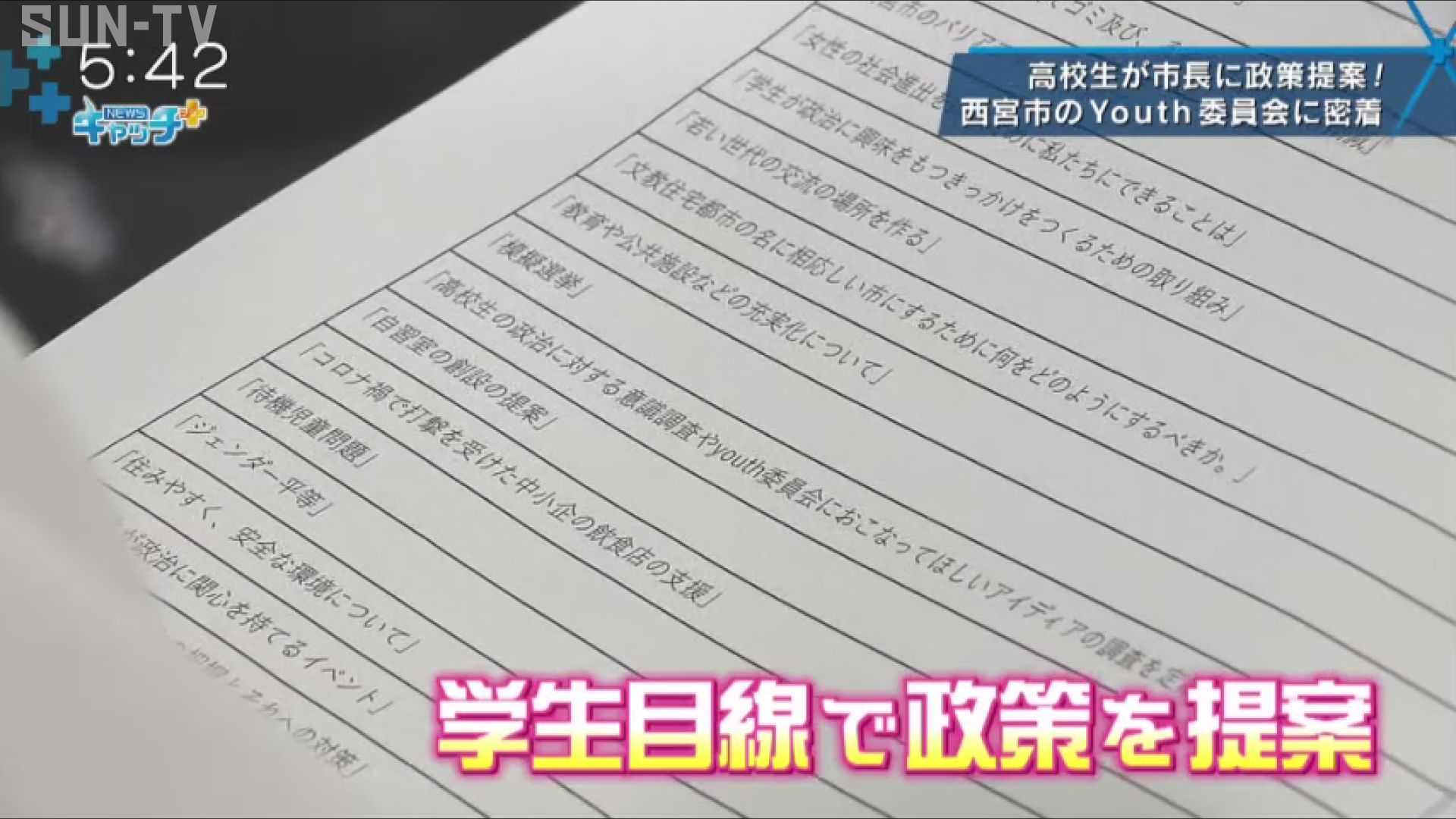 西宮市内の高校生24人がつくる「Youth委員会」。若者の視点で見つめた西宮市政について高校生が直接市長に政策を提案します。