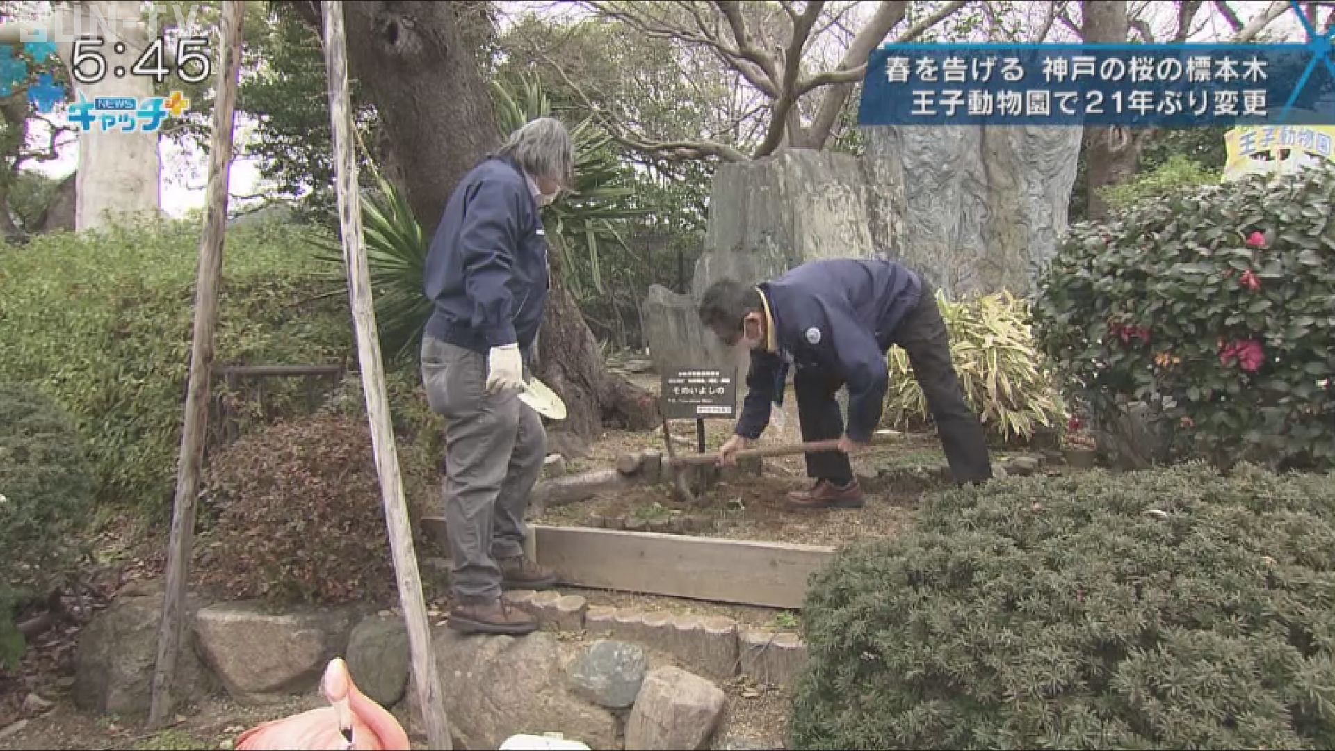 そこで近くの王子動物園の桜を選定し、2002年から入場門近くのソメイヨシノを標本木としてきました。そして今回、21年ぶりに標本木の場所が変更されることになり、気象台の職員が案内板の移し替え作業を行いました。