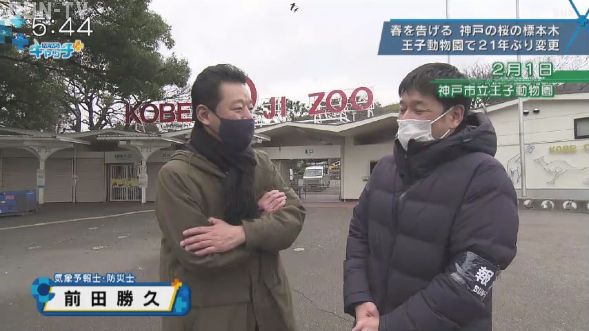 神戸の開花は平年が3月27日。今はまだ新しい標本木の硬いつぼみが厳しい寒さに耐えています。満開の桜を楽しめる春は、もう少し先です。