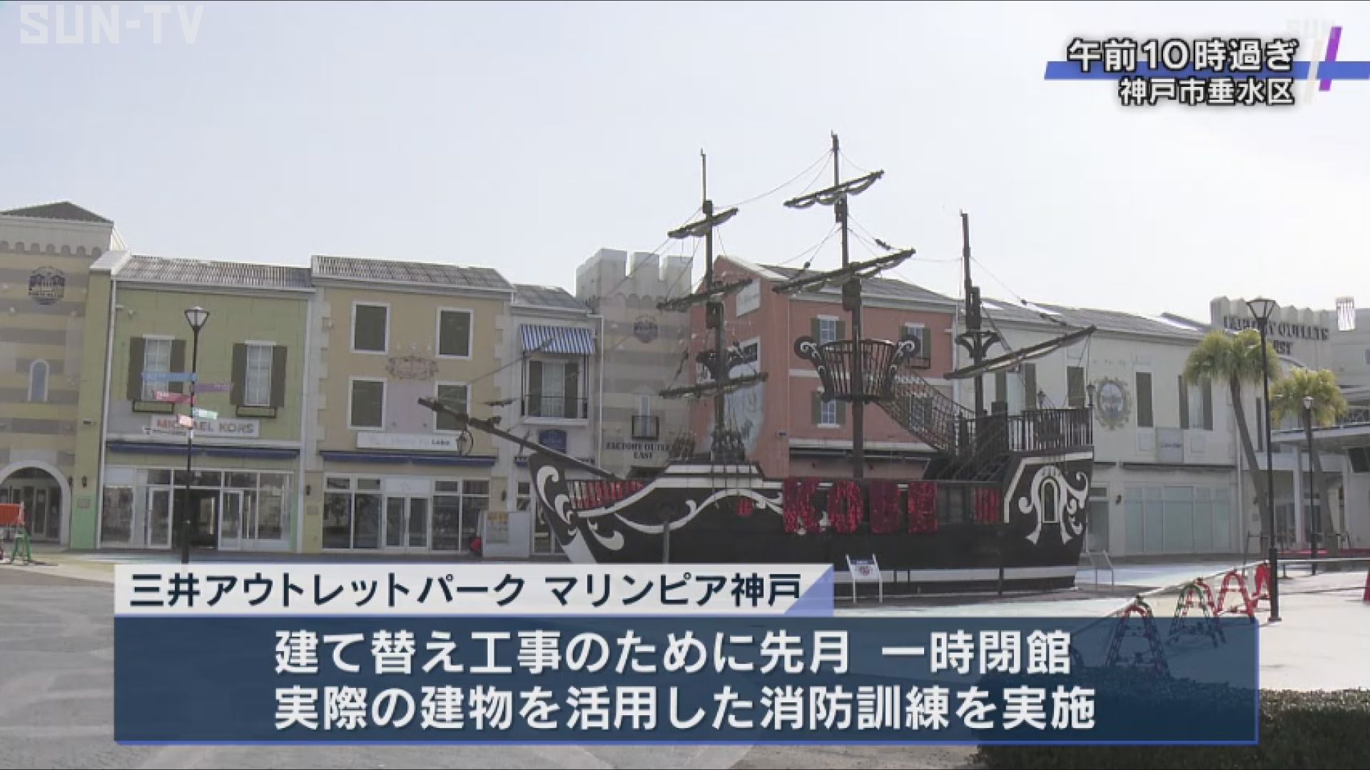 建て替え工事のために先月一時閉館し、解体が予定されている神戸市垂水区の三井アウトレットパークマリンピア神戸で2月6日行われたのは、実際の建物を活用した消防訓練です。 訓練は、施設を所有する企業の協力のもと、神戸市消防局が実施しました。