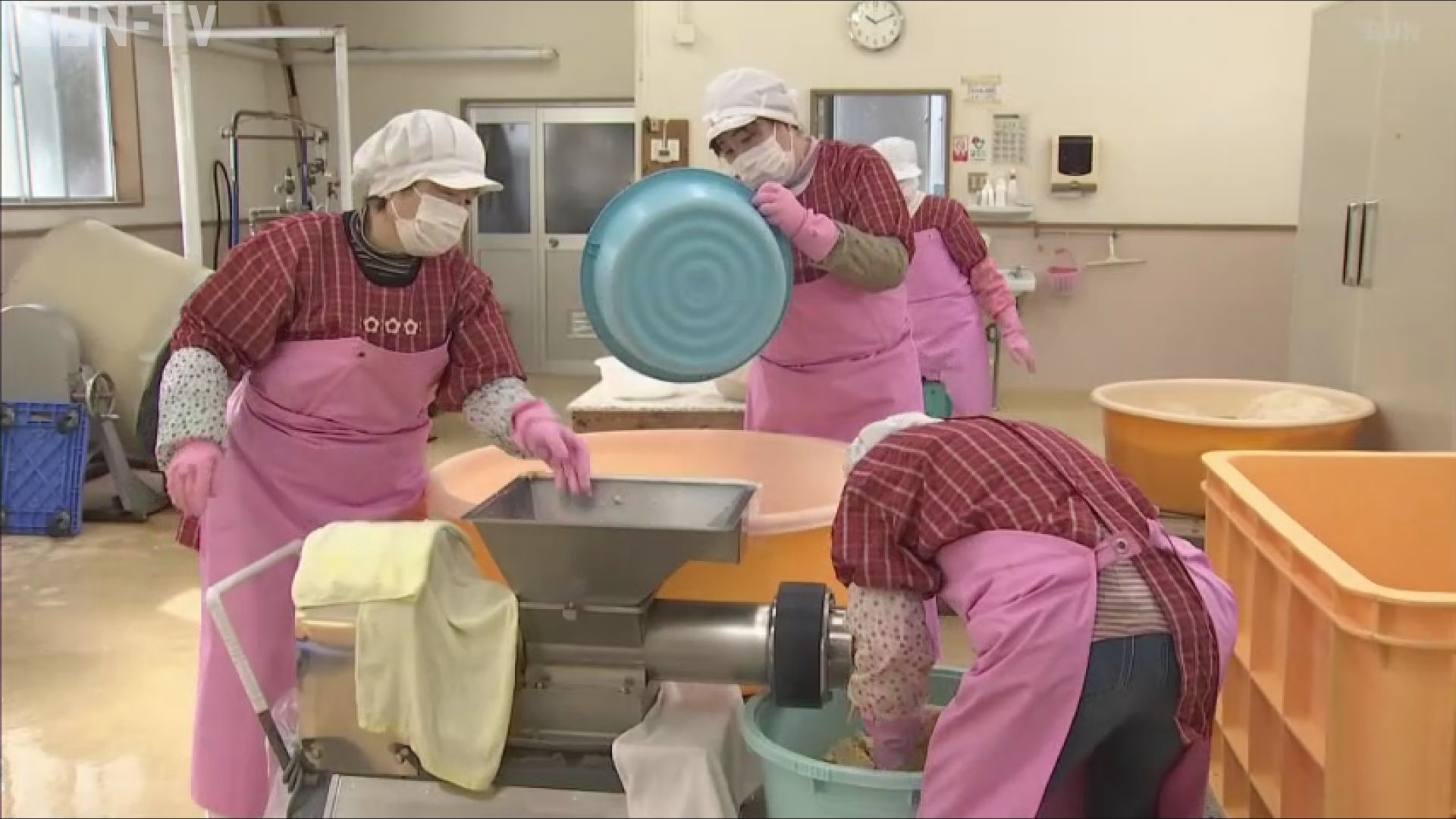 「米地みそ」は年3か月ほどかけてじっくり熟成させることでまろやかな味わいに仕上がるということで、ことしはおよそ11トンの生産を目指して4月上旬まで仕込み作業が続くということです。