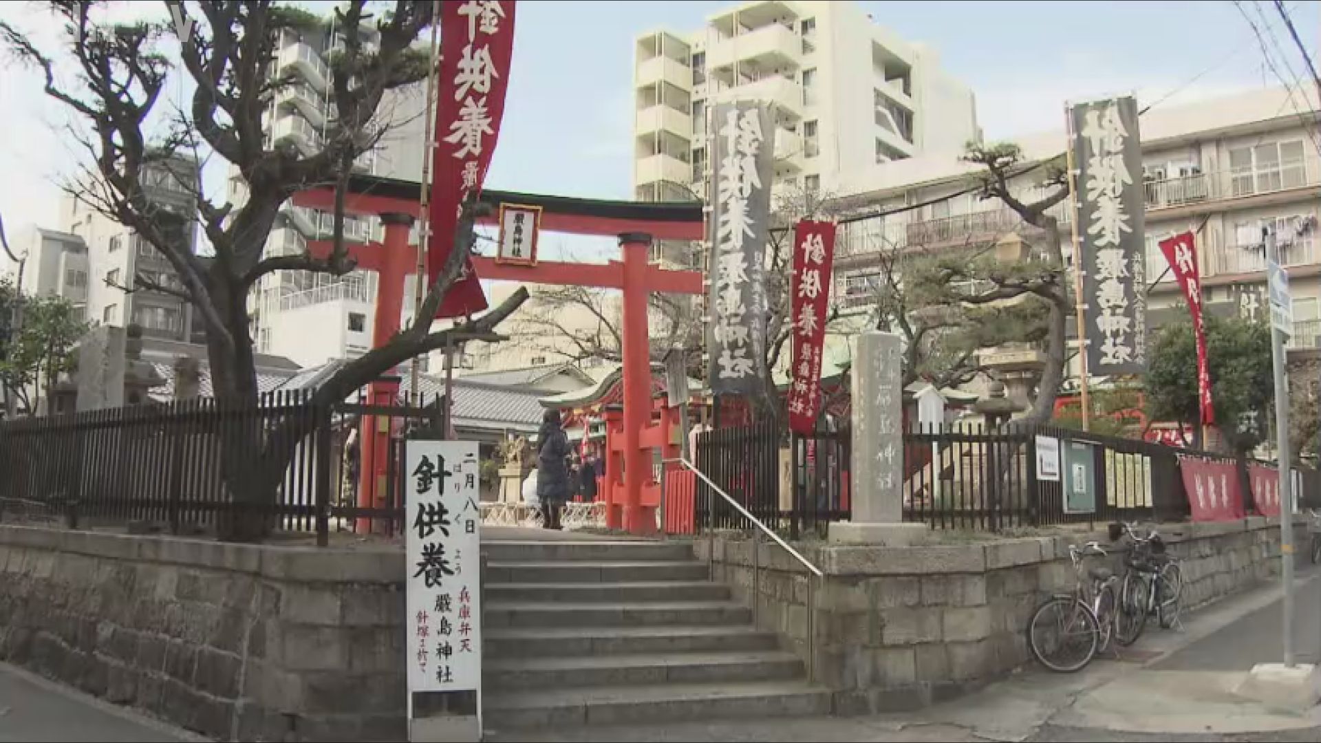 神戸市兵庫区の厳島神社では江戸時代から毎年、事始めの2月8日に針供養を営んでいます。