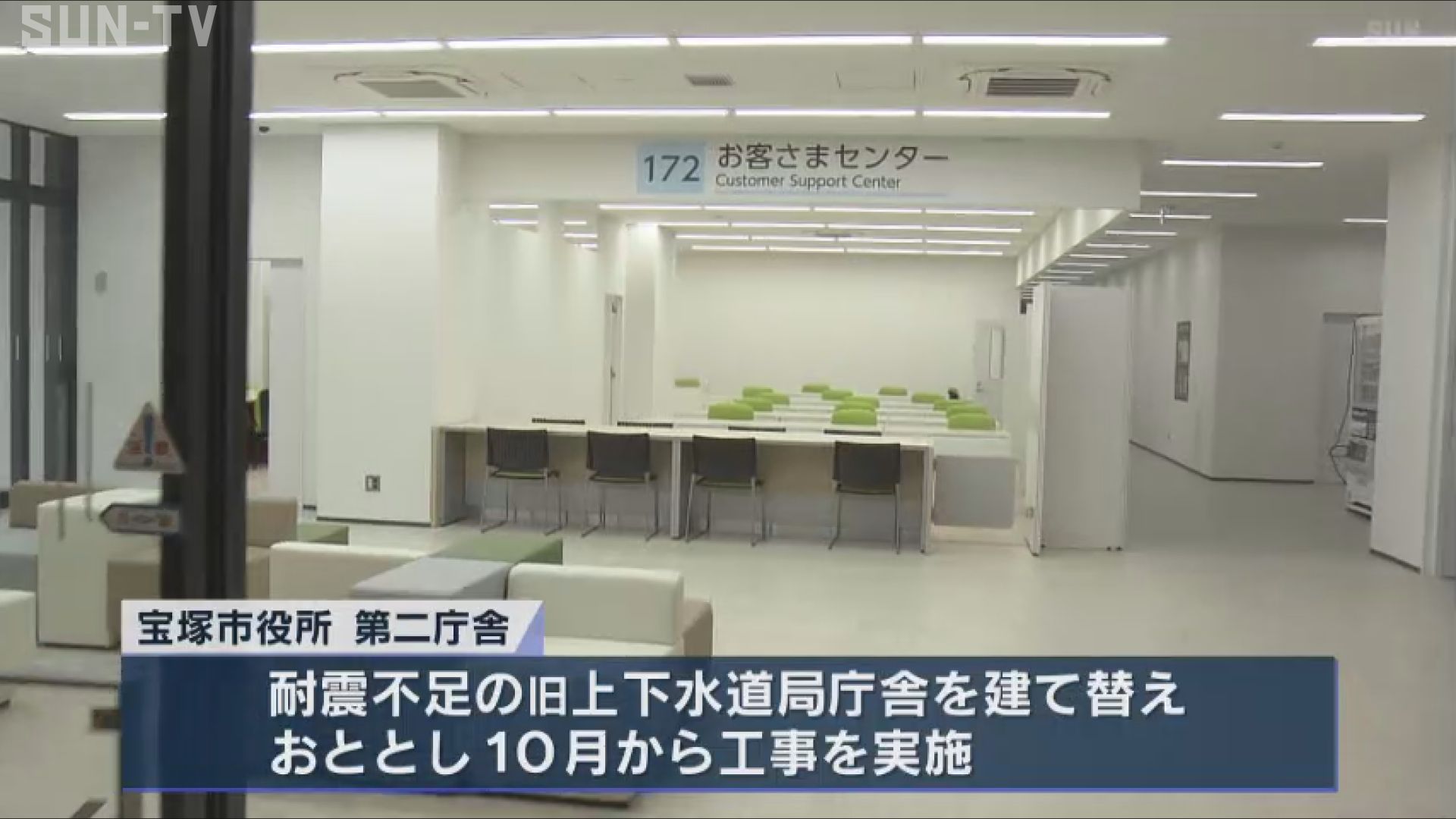宝塚市役所本庁舎の南西側に完成した第二庁舎は、耐震不足の旧上下水道局庁舎を建て替えたもので、おととし10月から工事が行われてきました。