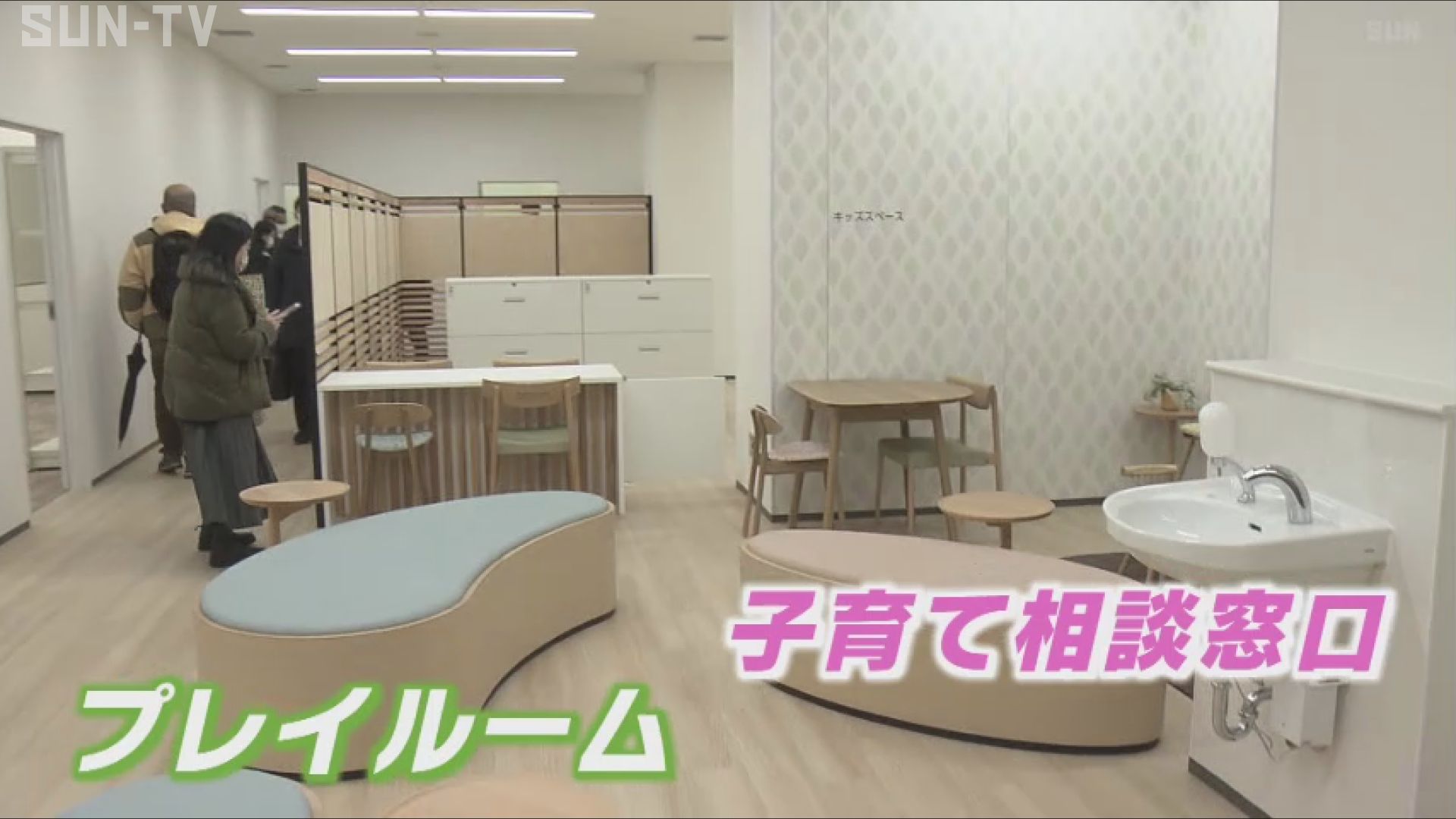 新庁舎は鉄筋コンクリート造りの2階建てで、1階に上下水道局窓口を設置。さらに、子育て相談窓口やプレイルームなども整備。