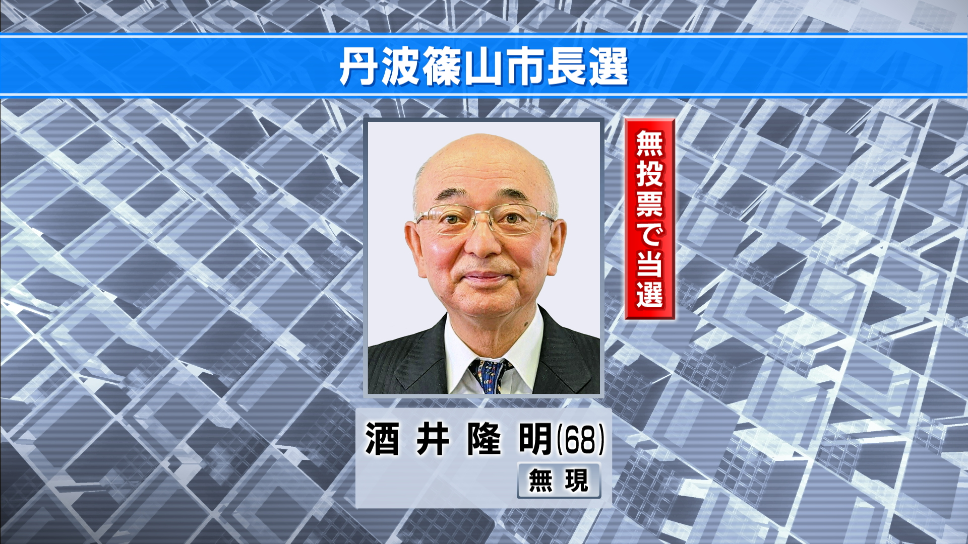 現職の酒井さんは現在4期目で、丹波篠山市長選は前回に続き、2回連続で無投票となりました。