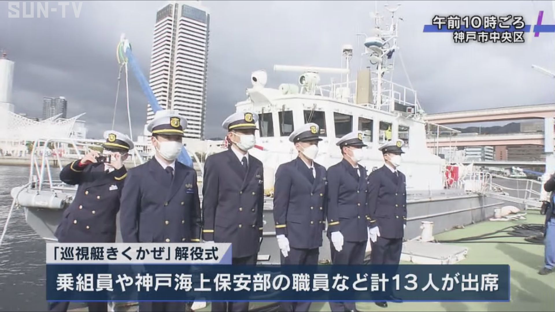 29年間にわたって兵庫県の神戸港周辺などで警備救難業務を担ってきた神戸海上保安部の「巡視艇きくかぜ」が老朽化に伴い引退することになり、14日、解役式が行われました。