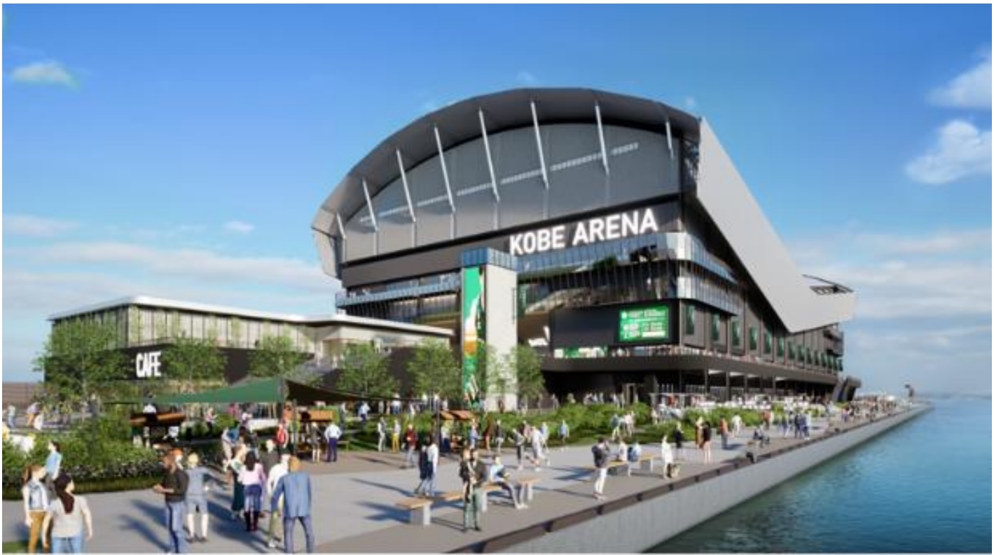 渋谷:私たちのアリーナは神戸港の再開発の一環として突堤に建つ。世界的にもないだろう。