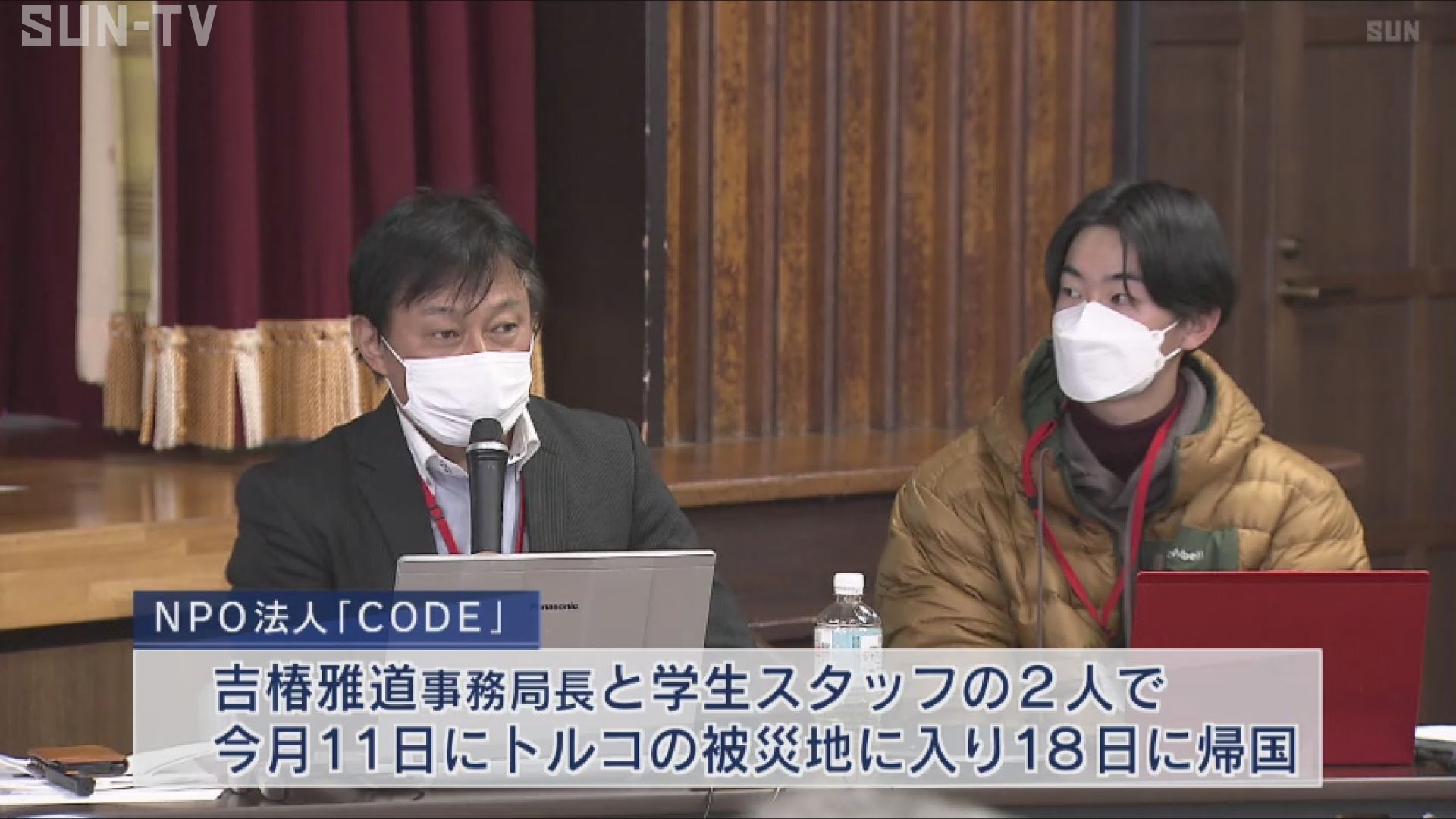 兵庫県神戸市内で報告を行ったのは、NPO法人「CODE」の吉椿雅道事務局長と学生スタッフの2人で2月11日にトルコの被災地に入り、18日に帰国しました。