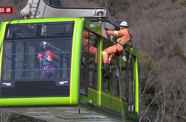 兵庫県姫路市の書写山ロープウェイで2月27日、緊急停止したゴンドラから乗客を救助する訓練が実施されました。