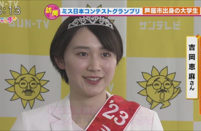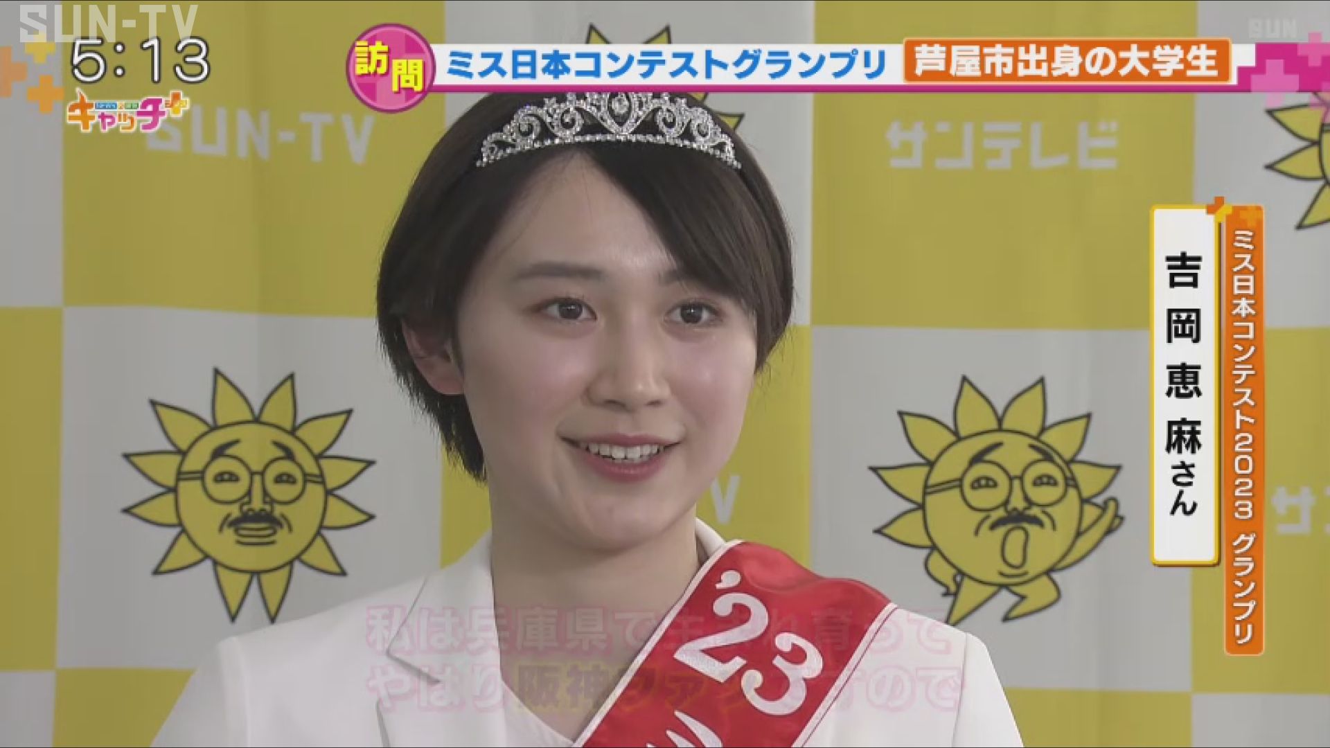 ミス日本グランプリは芦屋出身の大学生 2023.03.0108:26 地域・まち 「第55回ミス日本コンテスト2023」で、グランプリに選ばれた吉岡恵麻さんが2月28日サンテレビを訪れました。 ミス日本は1950年に第1回が開催された歴史あるコンテストで、内面や外見、行動の美しさを兼ね備えた女性を表彰するものです。 今回グランプリに選ばれた吉岡恵麻さんは、芦屋市出身の大学生で、アナウンサーを目指しているということです。 #ミス日本 記事のギャラリーを見る ニュース一覧へ戻る