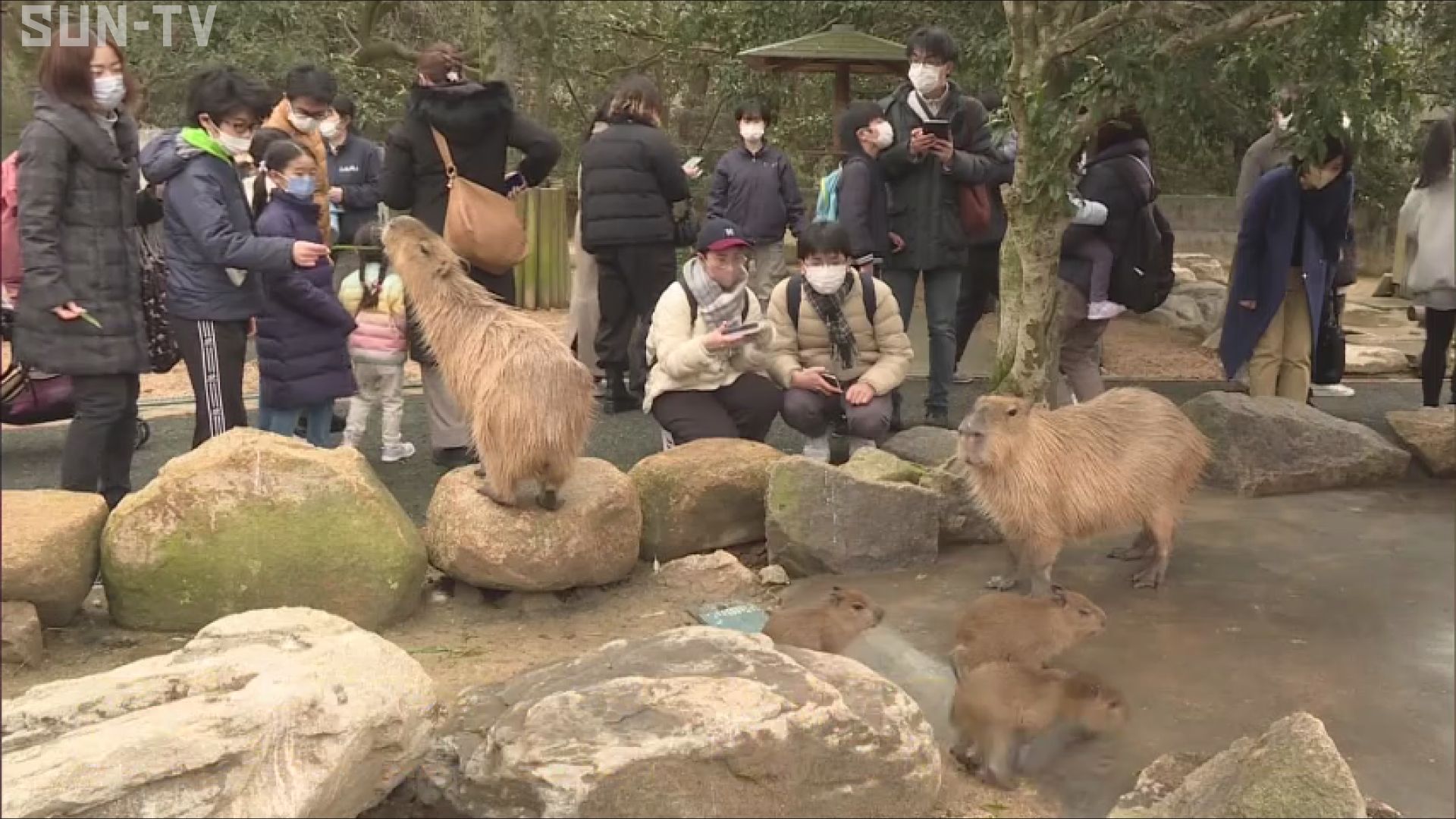 姫路セントラルパークでは、2月初めに生まれたカピバラの三つ子の赤ちゃんが一般公開されています。