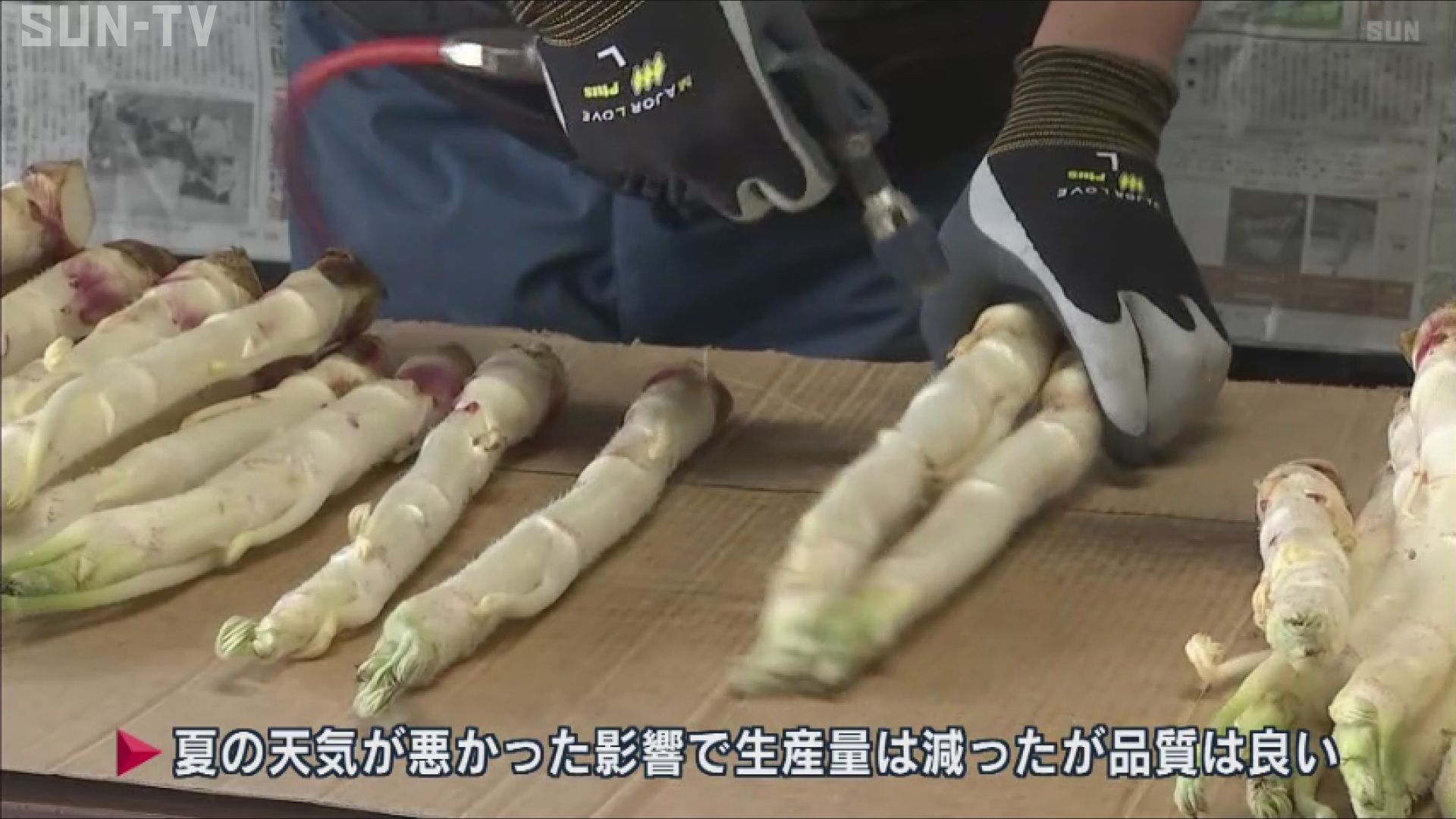 今シーズンは、夏の天気が悪かった影響で生産量は減りましたが、品質は良いということです。 シャキシャキの歯ごたえで、酢のものや天ぷら、きんぴらなどにして食べるのが人気の特産「山うど」。 収穫は、3月中旬まで続き、主に京阪神に出荷されます。